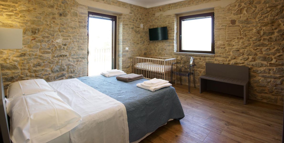 Today Borgo Baccile is a charming resort where you can breathe the story of a family of passionate winemakers who has transformed the ancient village nestled in the Majella Park into a welcoming and modern structure where the skilful recovery of the stone walls harmonizes with a decor modern, a new mix of materials and the outdoor pool suspended over the vineyards.