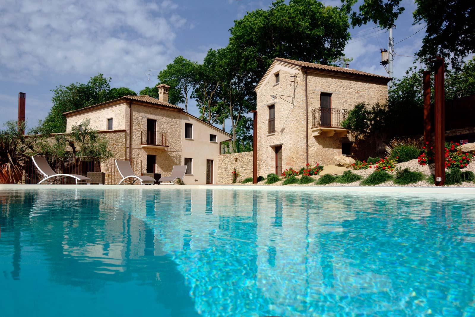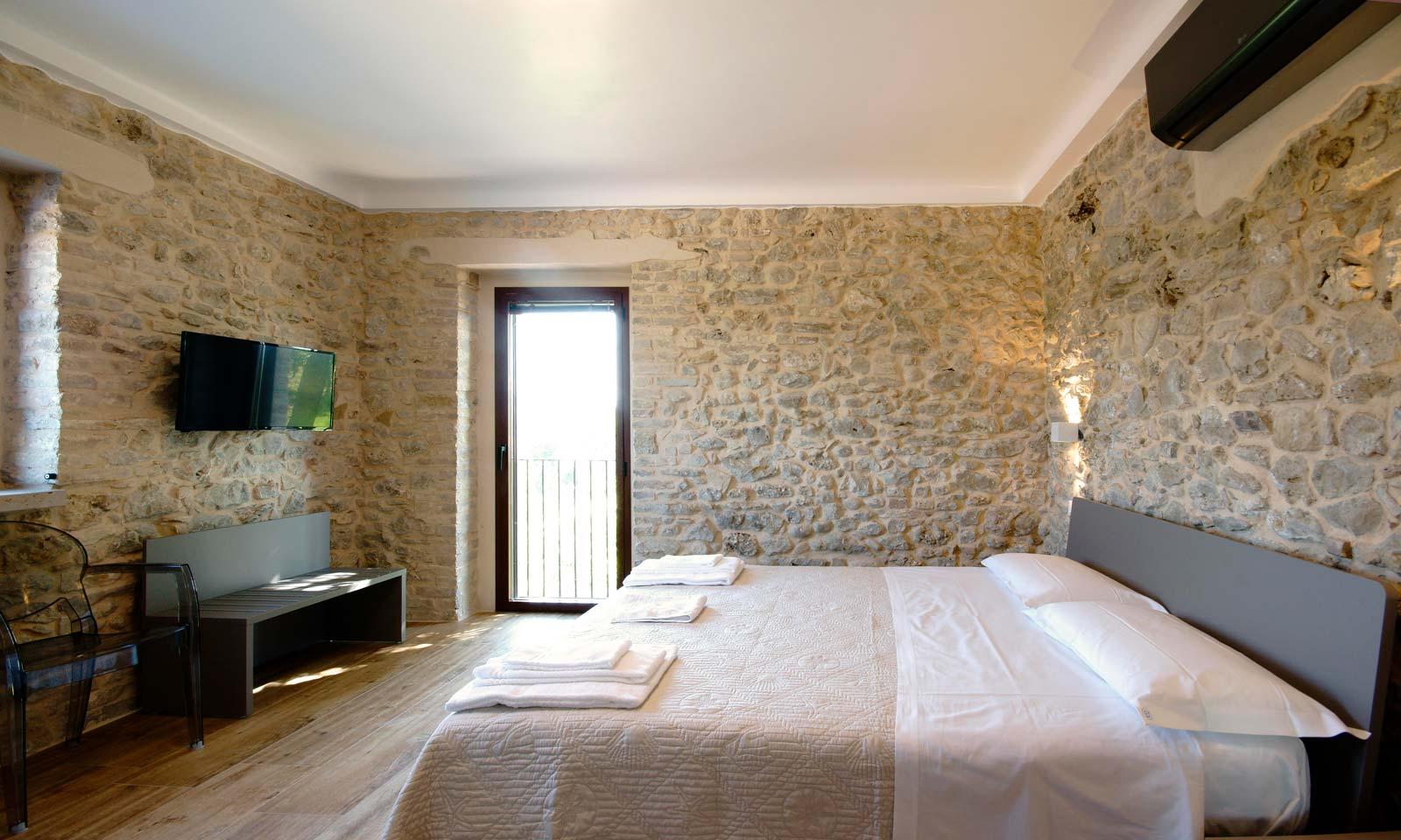 Today Borgo Baccile is a charming resort where you can breathe the story of a family of passionate winemakers who has transformed the ancient village nestled in the Majella Park into a welcoming and modern structure where the skilful recovery of the stone walls harmonizes with a decor modern, a new mix of materials and the outdoor pool suspended over the vineyards.