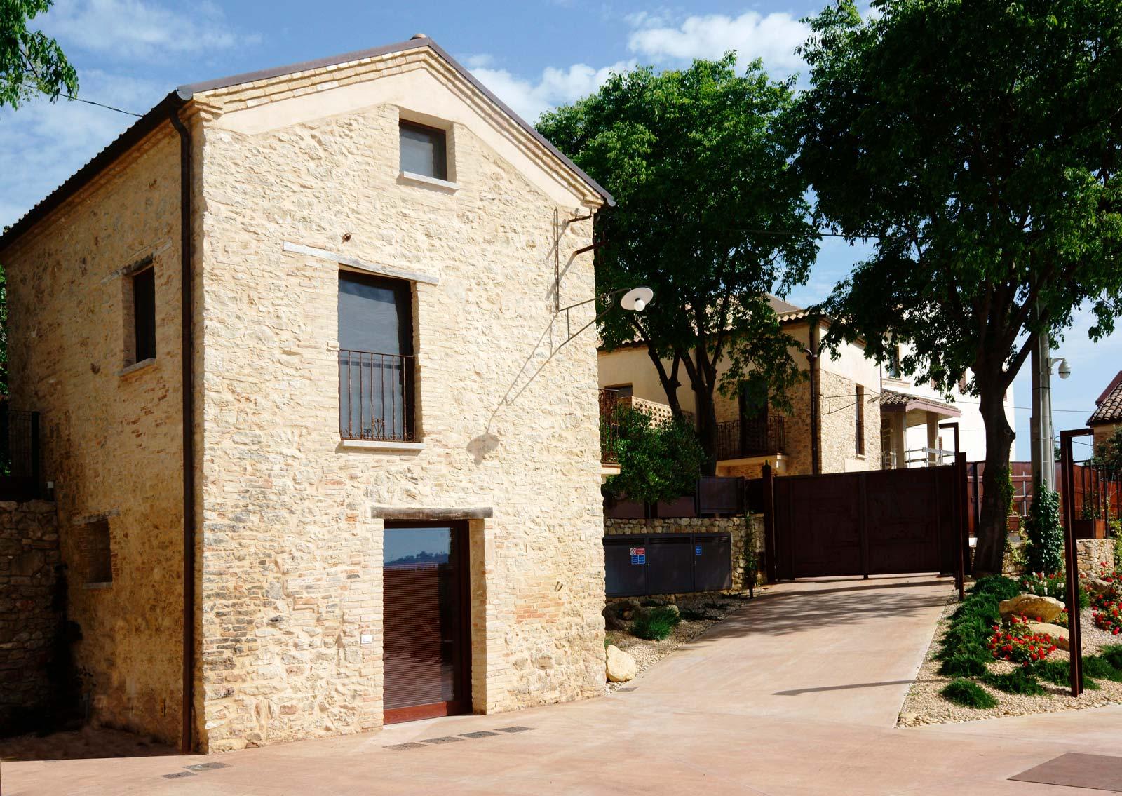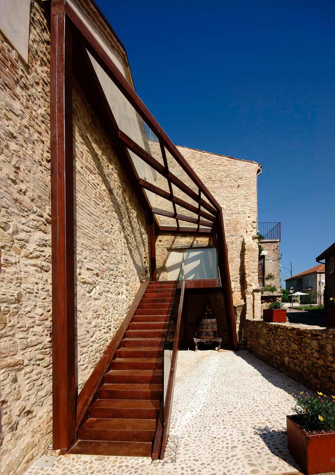 Borgo Baccile is an interesting renovation/redevelopment project which includes not only conservative restoration work but also the addition of a piece of strikingly modern architecture to complete the most seriously damaged original building: a modern structure in corten steel and glass. The structural work which increased the size of the buildings by adding new reinforced concrete and brickwork structures with wooden roofs was a fundamental part of the project.