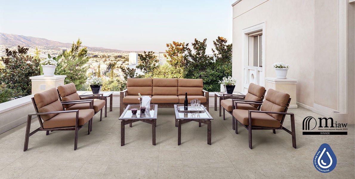 Carácter’s timeless design was chosen as a ‘Best of’ due to the innovative technologies intrinsic to this stone-look collection: Puro Marazzi Antibacterial, the new antibacterial technology for ceramic surfaces that eliminates up to 99.9% of bacteria and other harmful microorganisms, and StepWise™, a new production process patented by Marazzi that creates soft-touch surfaces with exceptionally high slip resistance properties. Carácter combines these technological benefits with a “green” soul: the collection is manufactured with 40% recycled material.