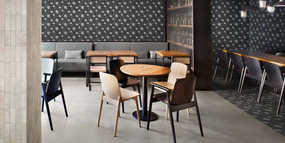There are two sizes – 60×120 cm and 30×120 cm – in 8.5 mm thickness, dimensions which place the Poster collection in complete accordance with the Alba, Carácter and Plaza collections – inspired by exquisite stone surfaces, the tactile beauty of wood and the bare concrete aesthetic – which, like Poster, feature the Puro Marazzi Antibacterial technology.