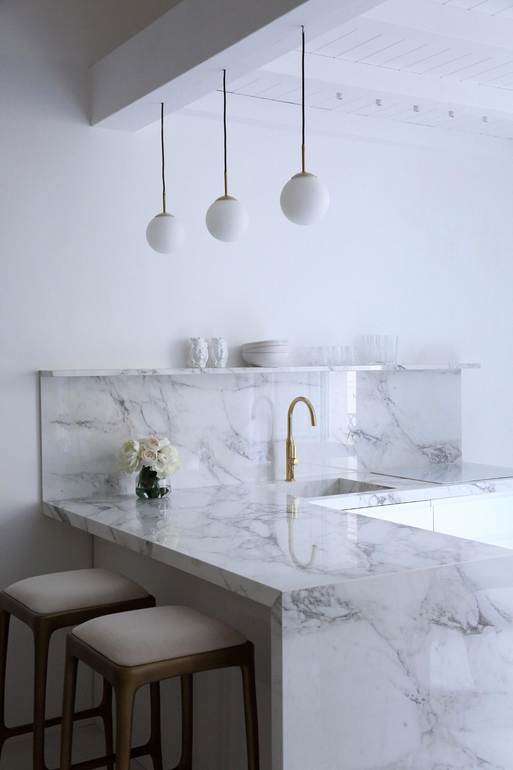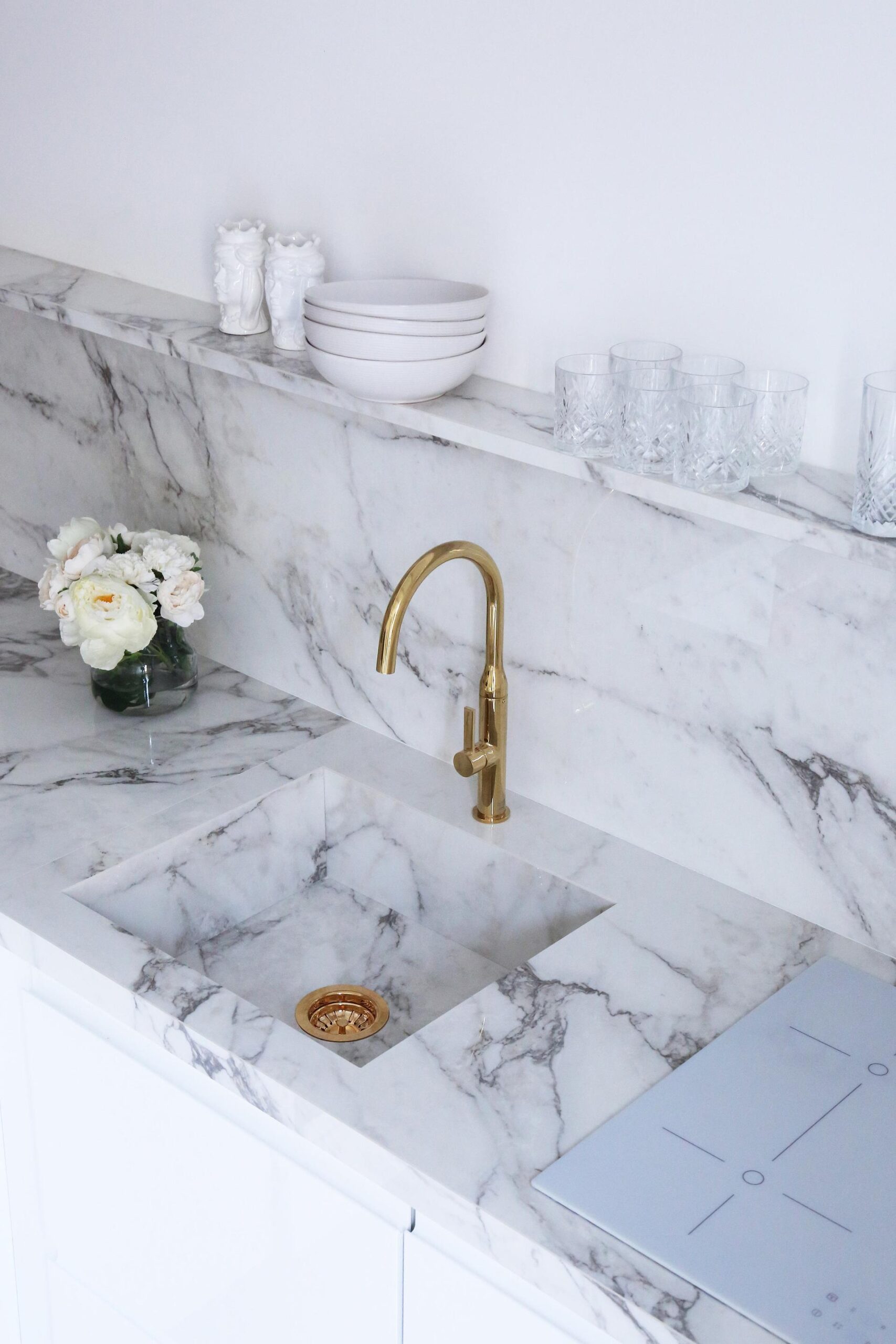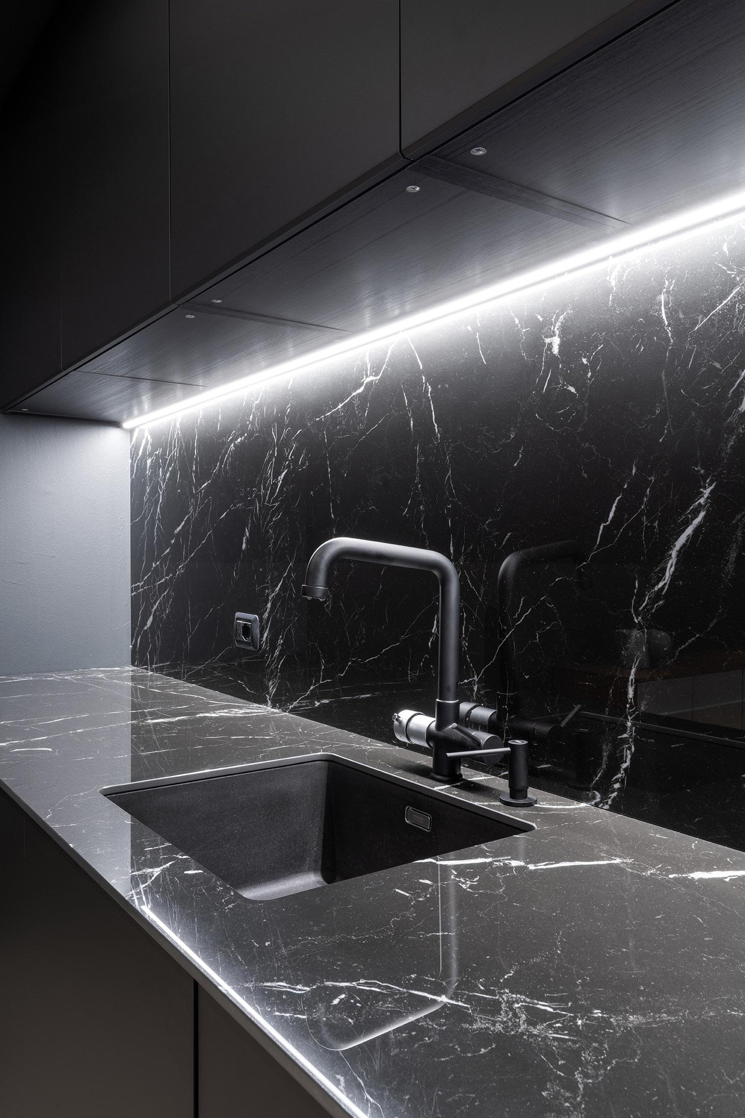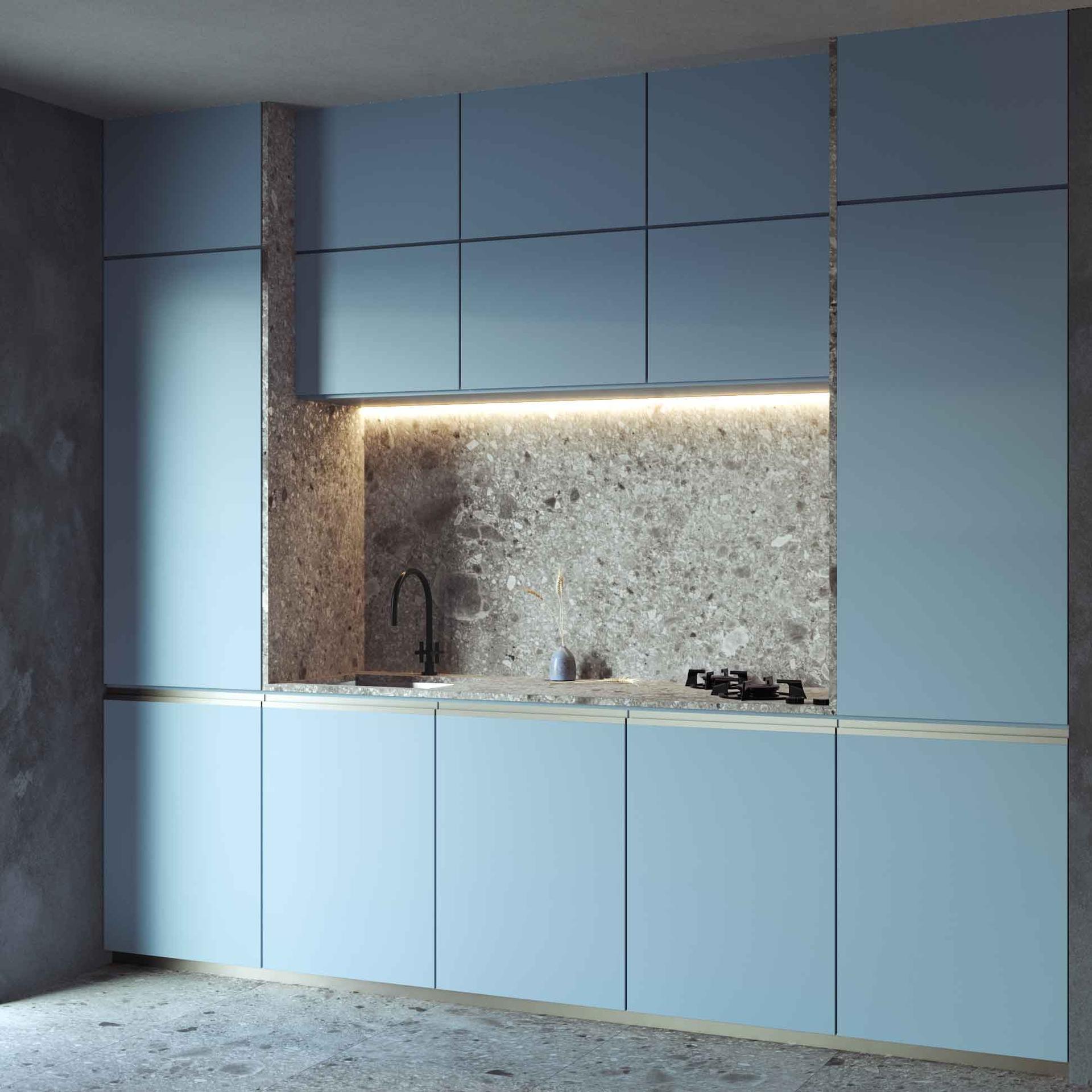 Dialoguing with other spaces in the home, the kitchen becomes increasingly central to our everyday experience. Aided by contemporary open plan layouts, the kitchen merges with the living-room, mirroring its material evocations and exquisite finishes which, in the stone and marble effect, reference nature within the home. The same material thus appears from kitchen to dining table, in bespoke bench seats or in the doors of customised cupboards, in étagère shelving and on sideboards. The Top collections therefore express their full potential in unusual uses, also creating effects with extra glossy or matte surface finishes.