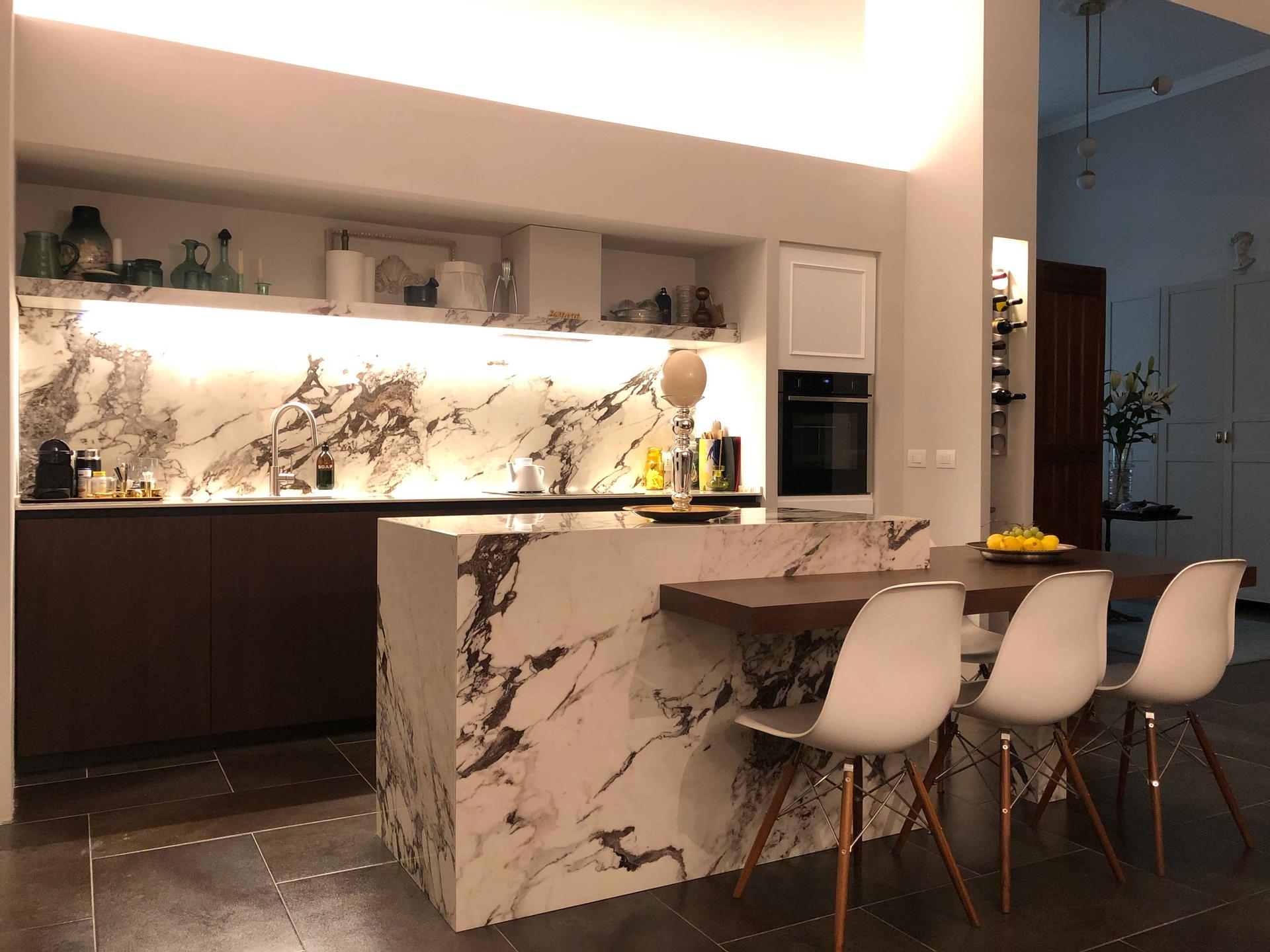 The Top large slab collections raise the free expression of creativity to new heights. For bespoke kitchens in continuity with the other rooms of the home