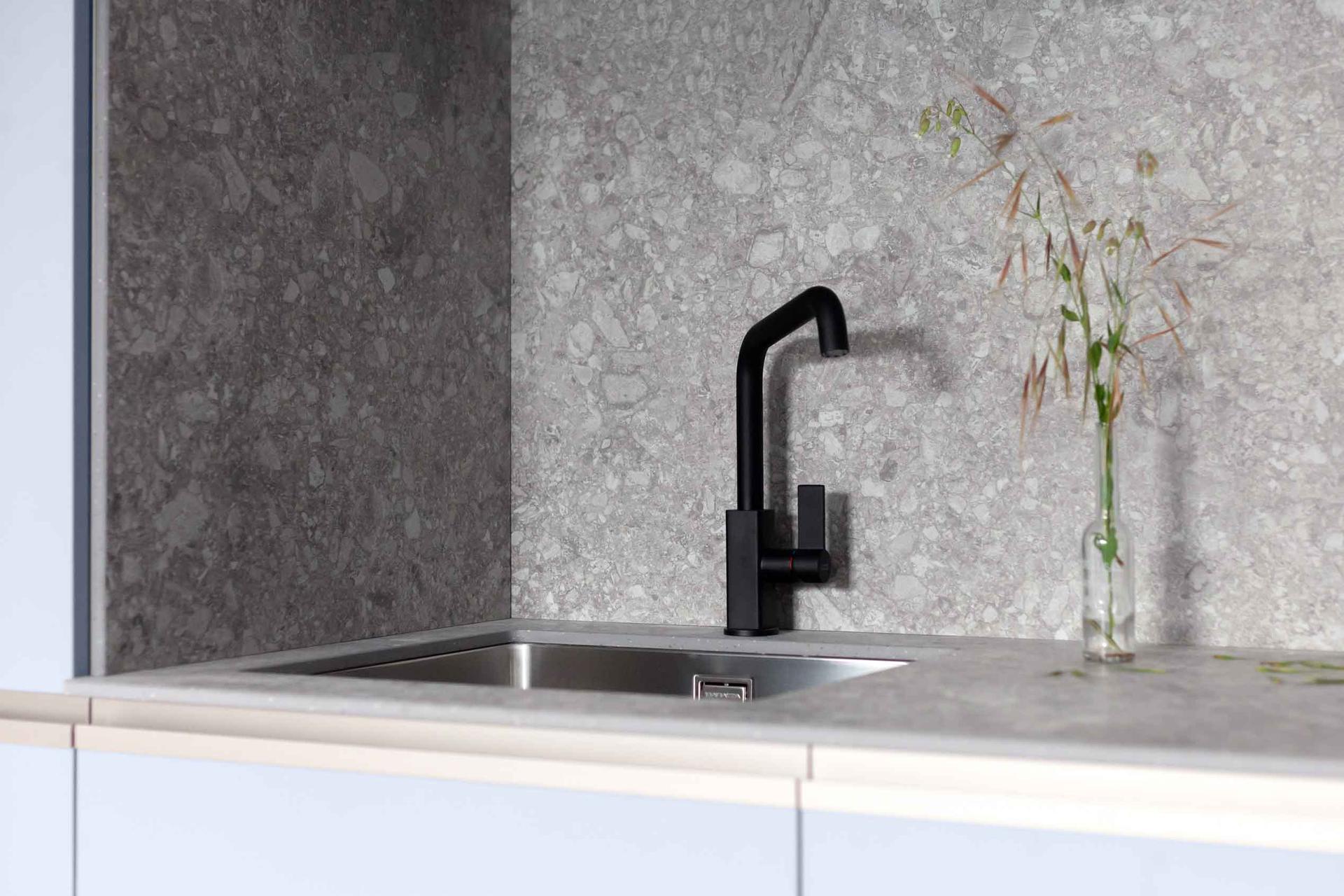 Multiple, versatile solutions for covering the kitchen with a sartorial flair to lend the space atmosphere and style. From the stone and marble effect to concrete textures, and from wood look to solid colours, The Top porcelain stoneware large slabs have been developed to enable the most widely varying design ideas and needs: six covering collections permit matching or contrasting combinations, freely applied to kitchen countertops and backsplashes, the finishes of tables, islands and peninsulas, and other furniture within the room.