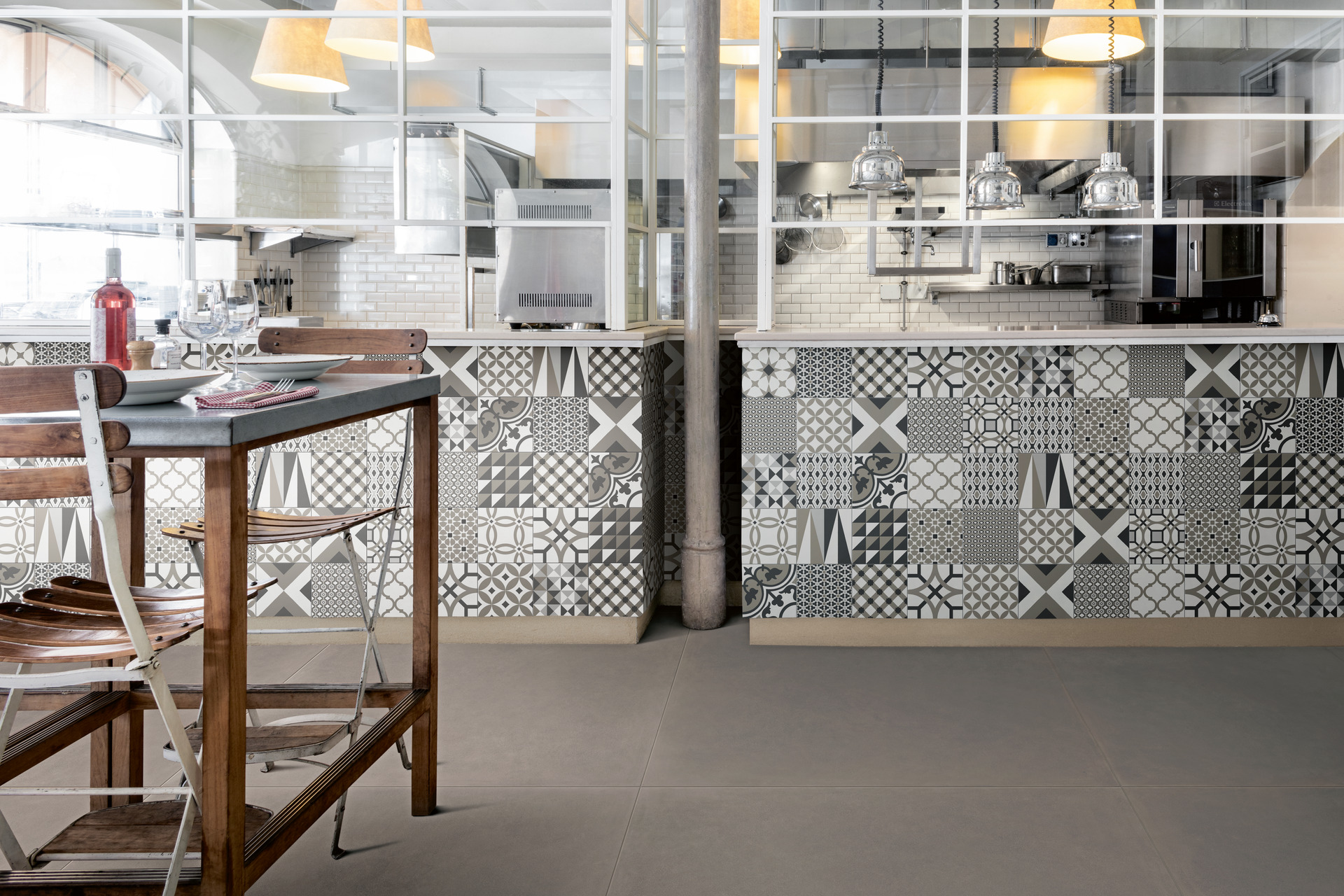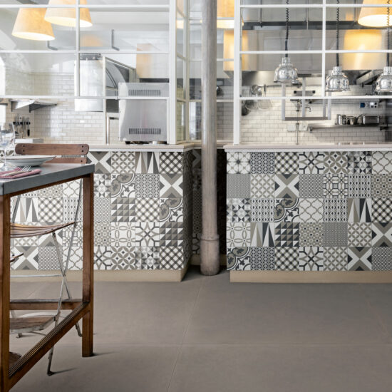 Porcelain stoneware for an industrial style: a great kitchen tiling solution