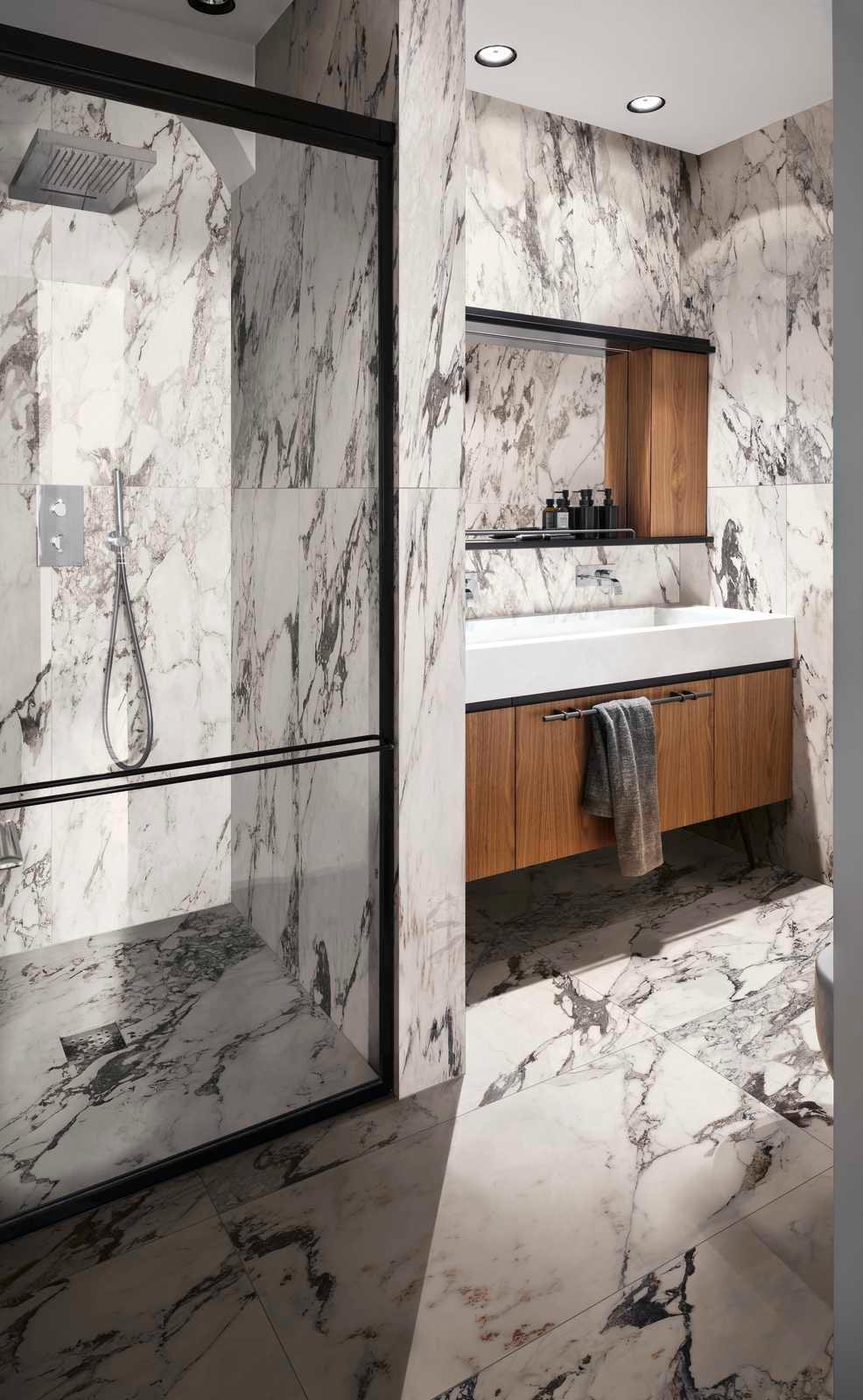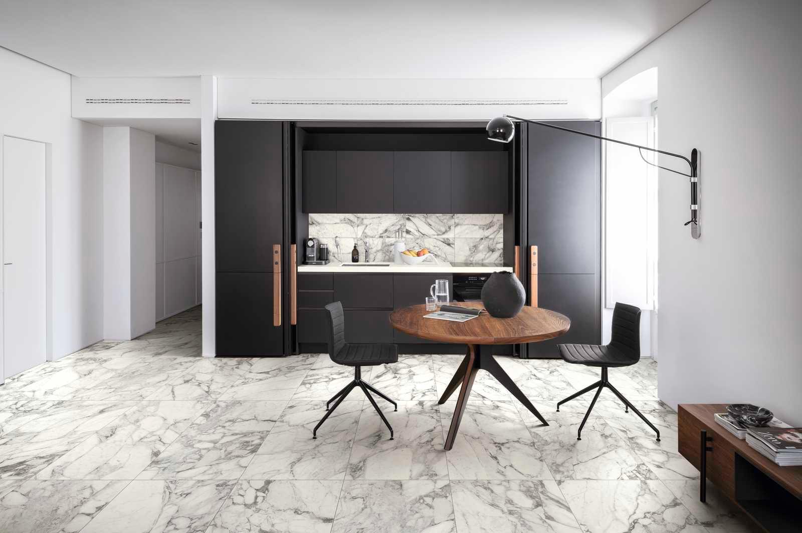 For a few years now we have been witnessing a major comeback of marble for interior decorating: once synonymous with classic style, these days marble is a very trendy finish in both design and architecture. It has also always been associated with luxury, since it is certainly not an economical material, but today it is an option for everyone thanks to marble-effect porcelain stoneware, which combines the beauty of the natural material, immaculately evoked thanks to digital technologies, with impressive technical qualities: it does not absorb liquids, does not stain and is perfectly cleanable.
