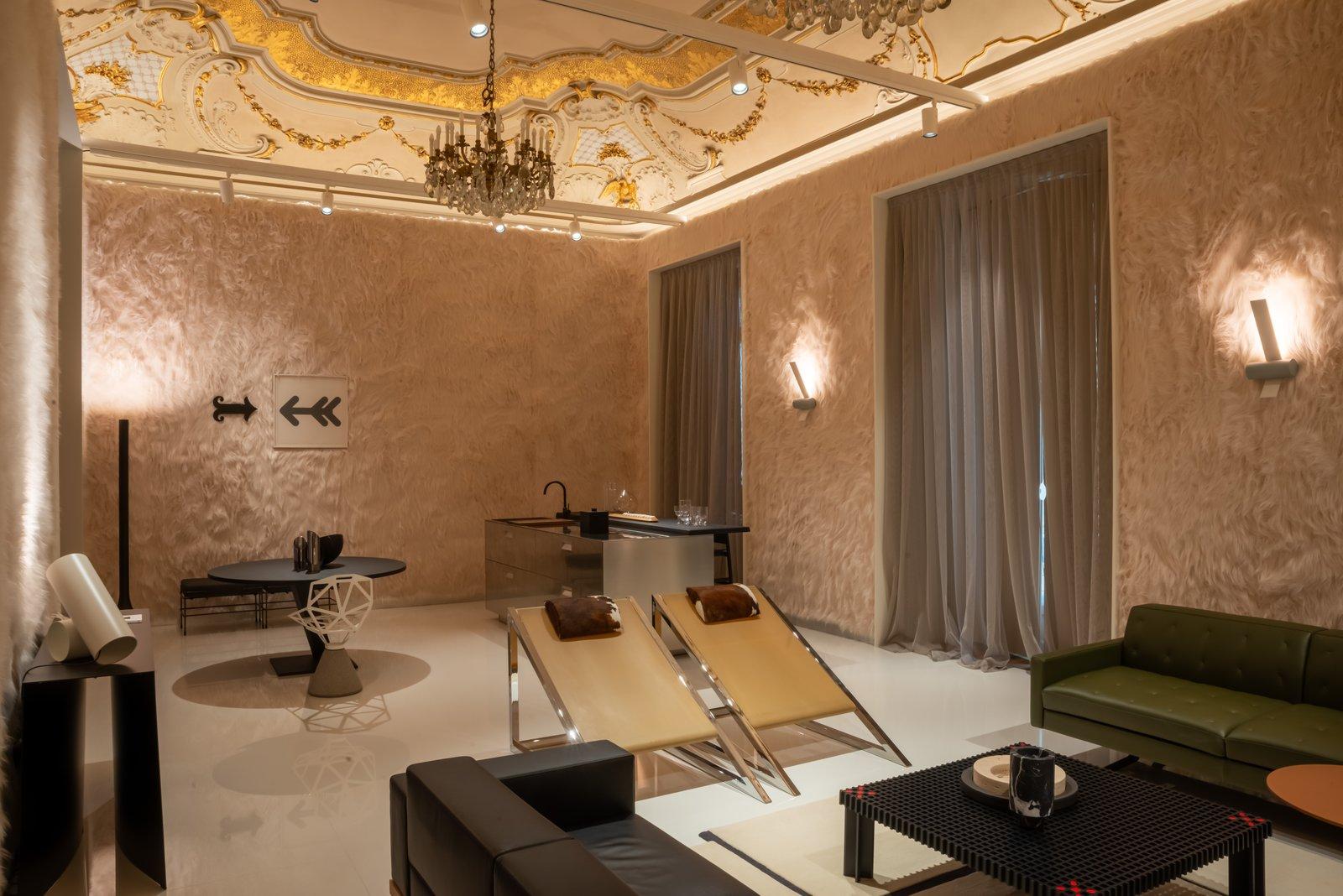 In the Hybrid room, the last in the sequence, we presented a space where the various home living functions – work, rest, fun, entertainment – are not compartmentalised but rather interlinked. They simply merge into each other and the design pieces featured are also more experimental and cutting-edge: they evade traditional classifications and open out to new interpretations.