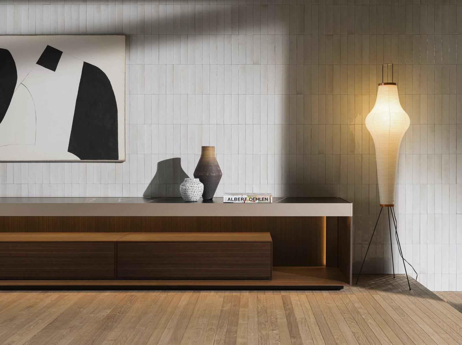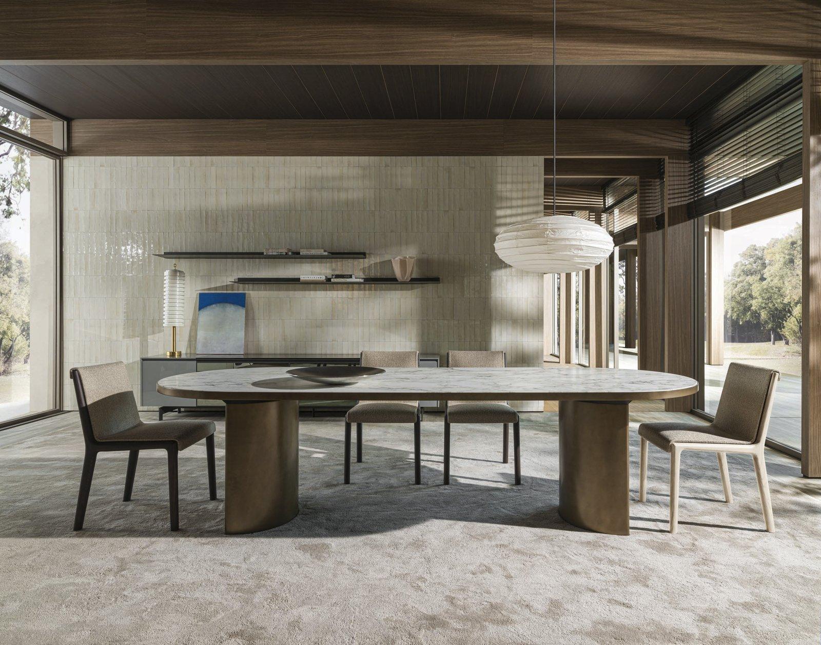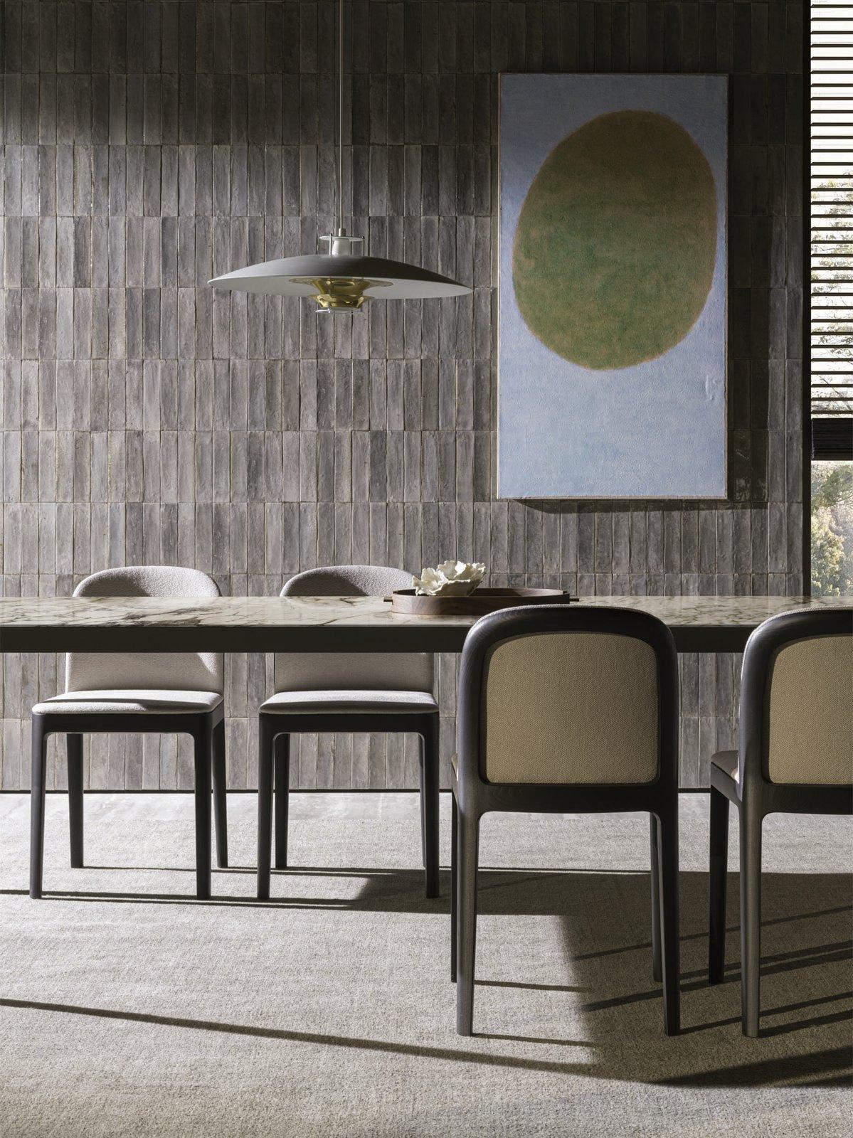 There is another link to the history of Italian architecture in the choice of Mystone Travertino, in Silver colour, used for the floors of the living areas and kitchen. Travertine is a material that has been in use since Roman times, and which also played a central role in the Renaissance and Baroque periods and, more recently, in Rationalism. A tradition that embodies the Italian spirit and is therefore very close to the identity of Molteni&C|Dada. Here, the porcelain stoneware is pleasantly matt, with a soft, textured feel and look that recalls the unfinished natural material. This choice is also a sustainable one, since ceramics do not deplete natural stone quarries and the composition of many Marazzi collections uses more than 40% recycled materials. Mystone Travertino corresponds to this ideal of a home in close touch with nature. “For a home to be “felt”, soft and true. With a concept of comfort that is visually expressed also through materials’ tactile appeal,” Vincent Van Duysen concludes.
