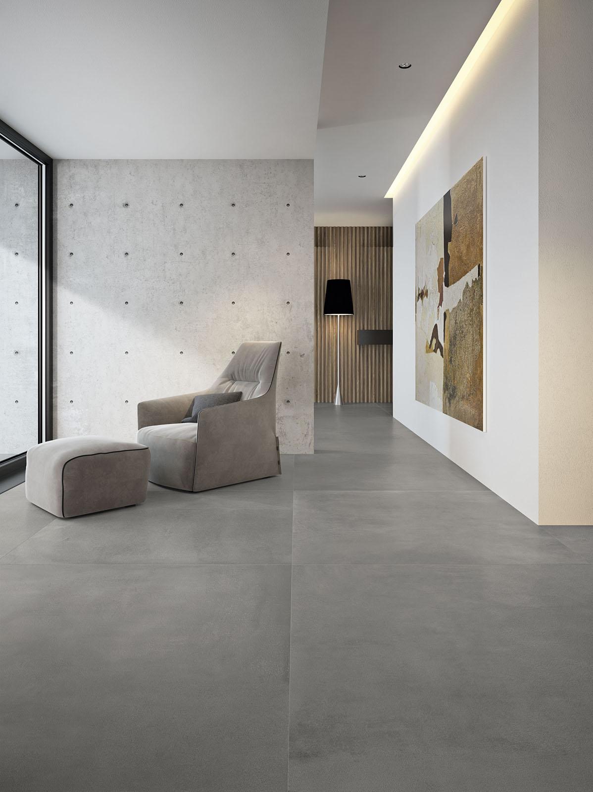 Elegant, functional concrete-look porcelain stoneware in the 120x240 cm and 120x120 cm sizes