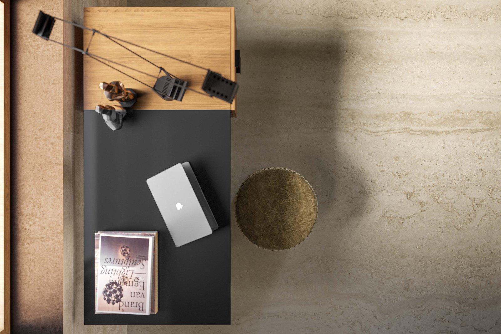 The villa is conceived as a faraway place, a buen retiro, anchored to the earth, but set in mountainous terrain. Cacti, spurges, palms and succulents are the stars of this stage. The colour of the land reflects and almost merges with the colours of the interior and is replicated on the exterior of the building. The materials interact with the natural light that enters through the large windows in a continuous interplay between inside and outside, indoors and outdoors. The ceramics permit a dialogue between the different rooms, creating a material continuum, an uninterrupted flow. Light, according to the interior designer, becomes a design tool: modulated with calibrated inlets, it plays with the textures and colours of the floor and wall surfaces. Mystone Travertino and the new Marazzi wood, marble, concrete and resin-effect collections feature in matches with small-size slabs such as Crogiolo Rice, Lume and Zellige and are also used to cover the large forms of the kitchen, washbasins, and magnificent fireplace in the living area.