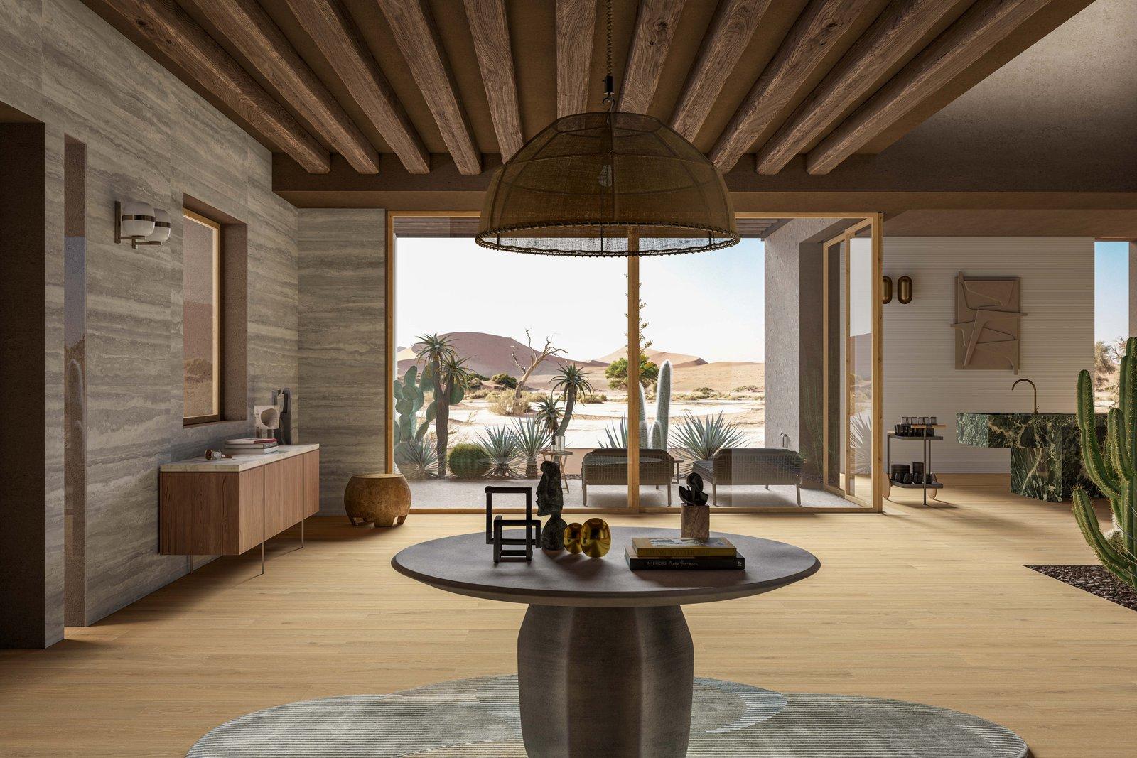 A dream villa, imagined by Alessandro Pasinelli in the mountainous desert, offers a material exploration in which ceramics play a key role in the design of the spaces. Natural material references are combined with high performance and resistance.