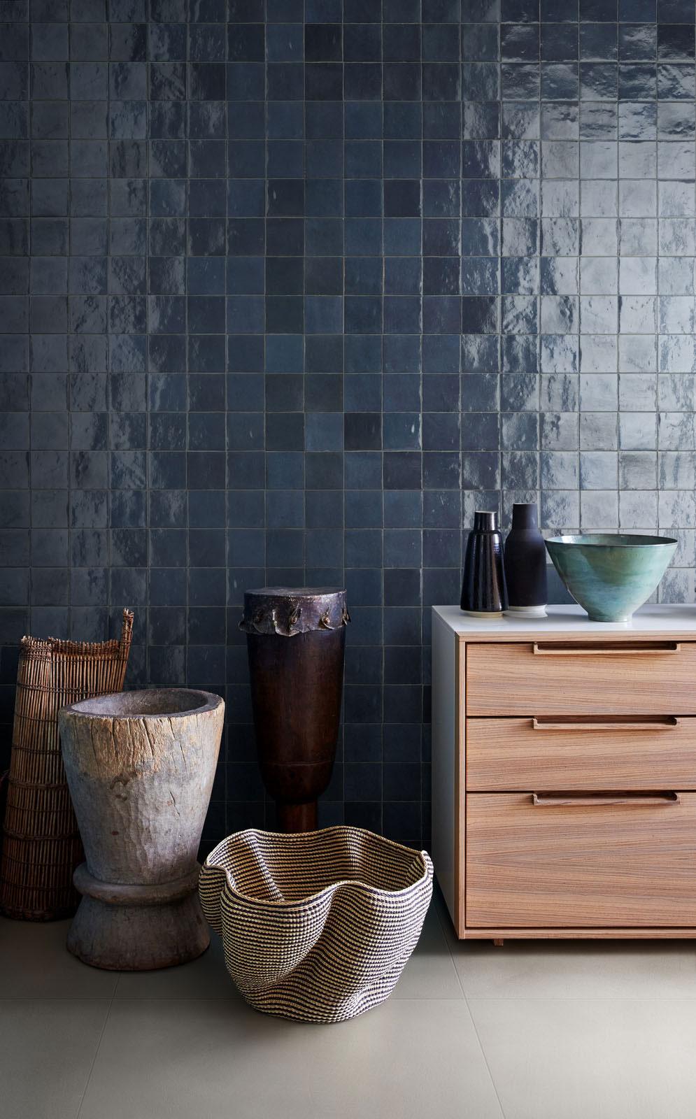 Not just in the bathroom: Zellige collection tiles are also an elegant, convenient solution for kitchen walls and backsplashes. The glossy finish, with unique irregularities created on each tile, is the final touch to the assortment in no fewer than 12 shades, including Gesso, Lana, Salvia, Argilla, Cammello, Carbone, Bosco and Corallo, Cielo and all the colours of the sea: Turchese, Petrolio and China.