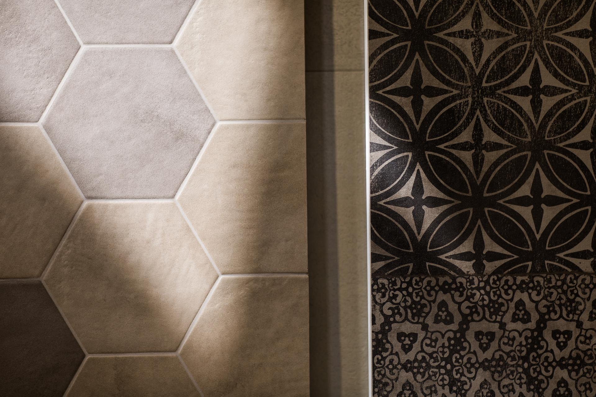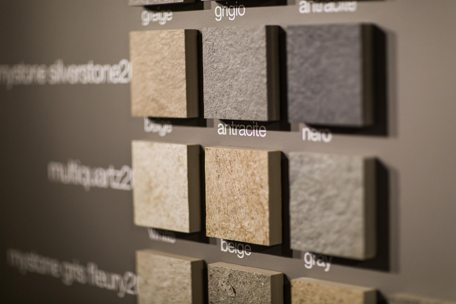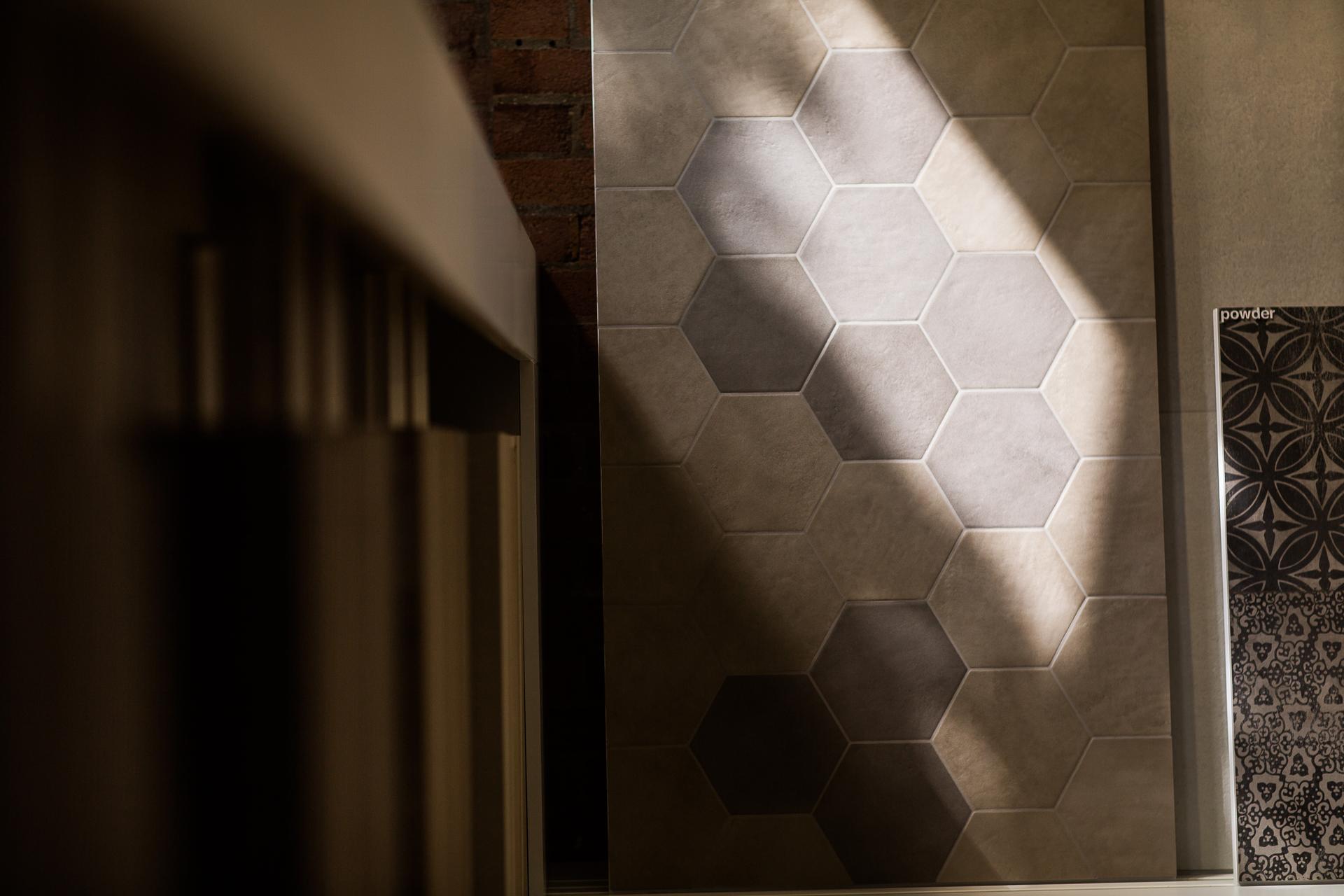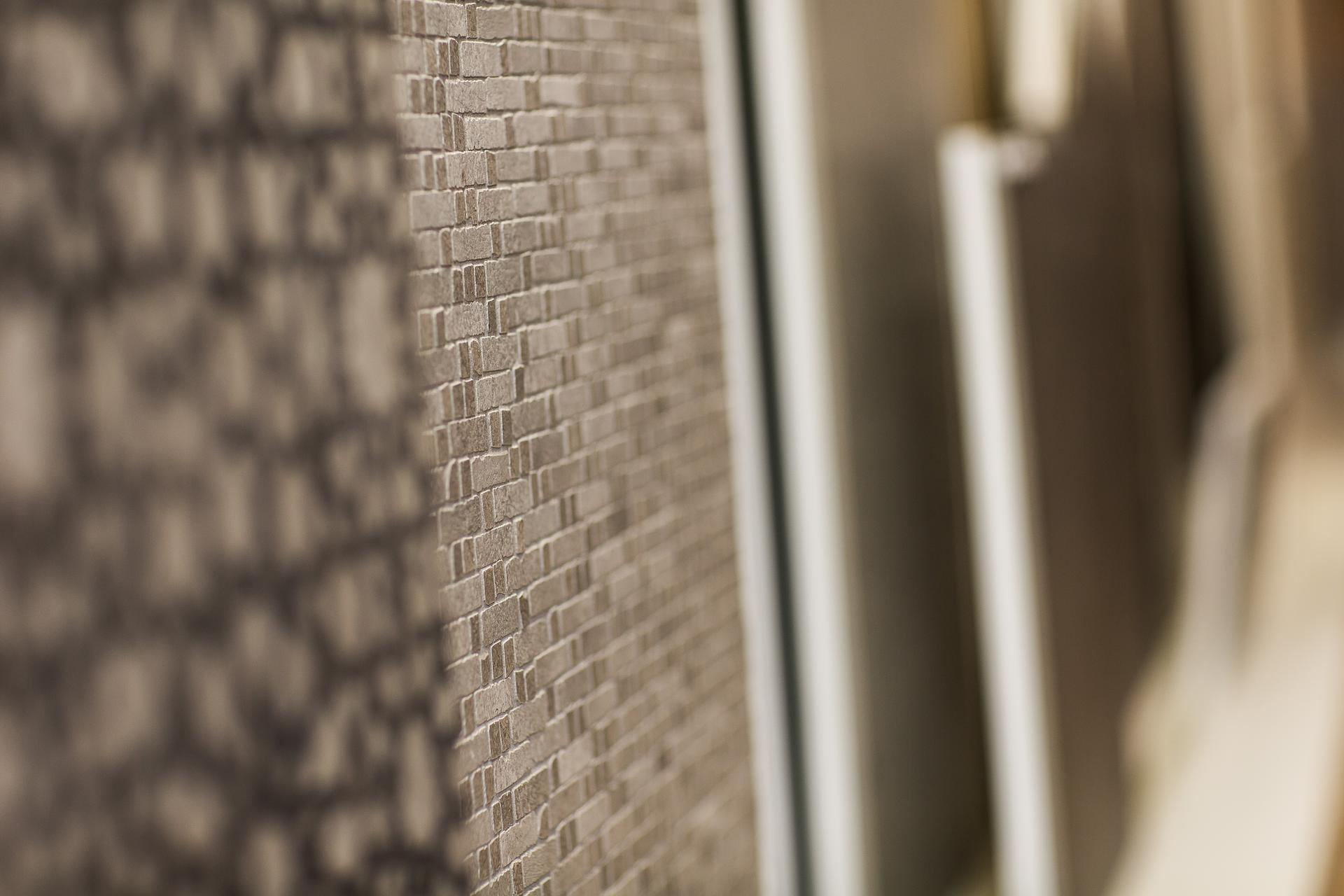 The entrance is eye-catching, evoking a dramatic scene change. A portal, a veritable second facade, creates a theatrical curtain: the stoneware slabs converge in a striking composition that conveys precision, attention to detail and innovation. The ceramic material employed is both protagonist and background and the installation is not simply a way of showcasing the product, but becomes a narrative device, the chance to tell a story or put across an idea.