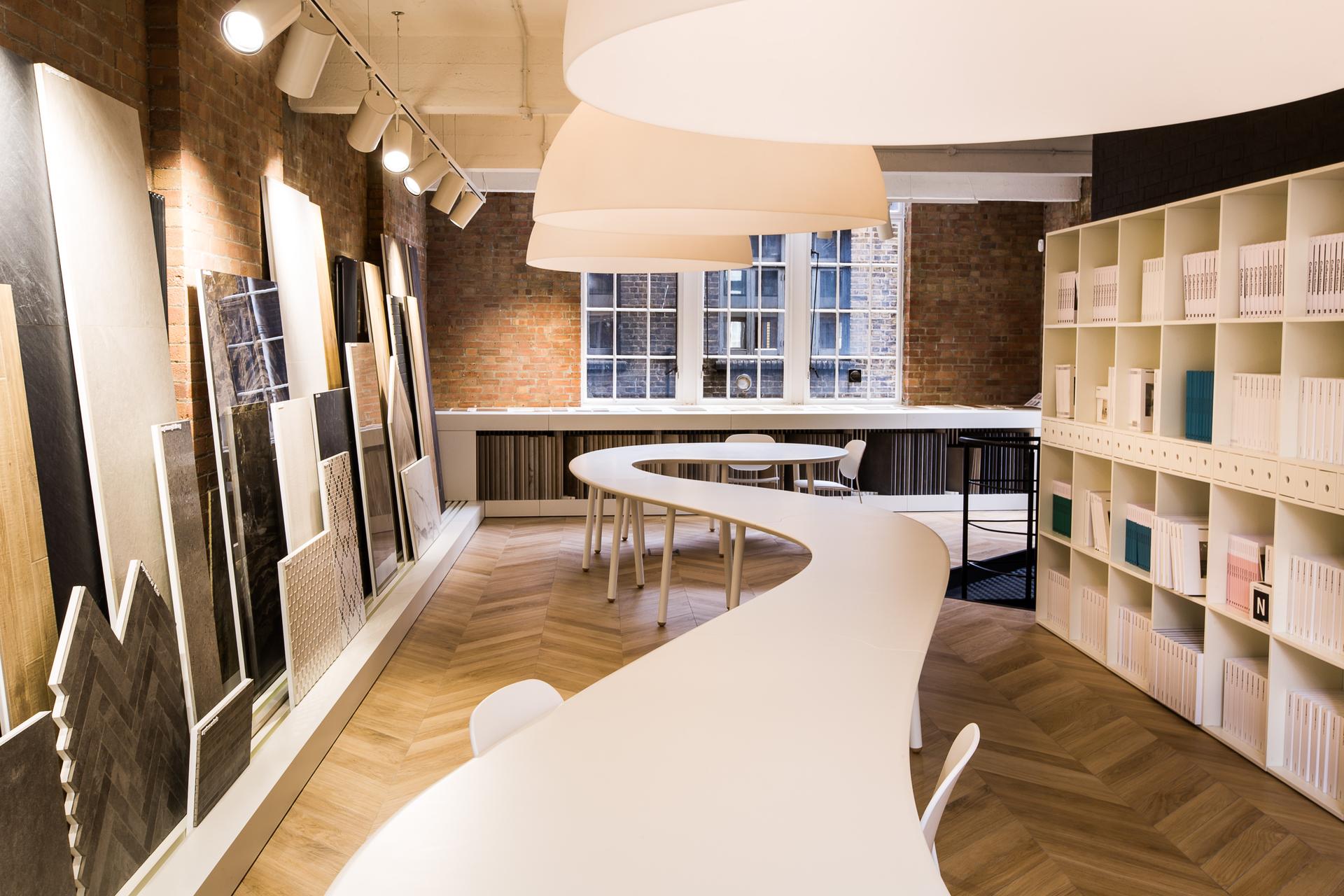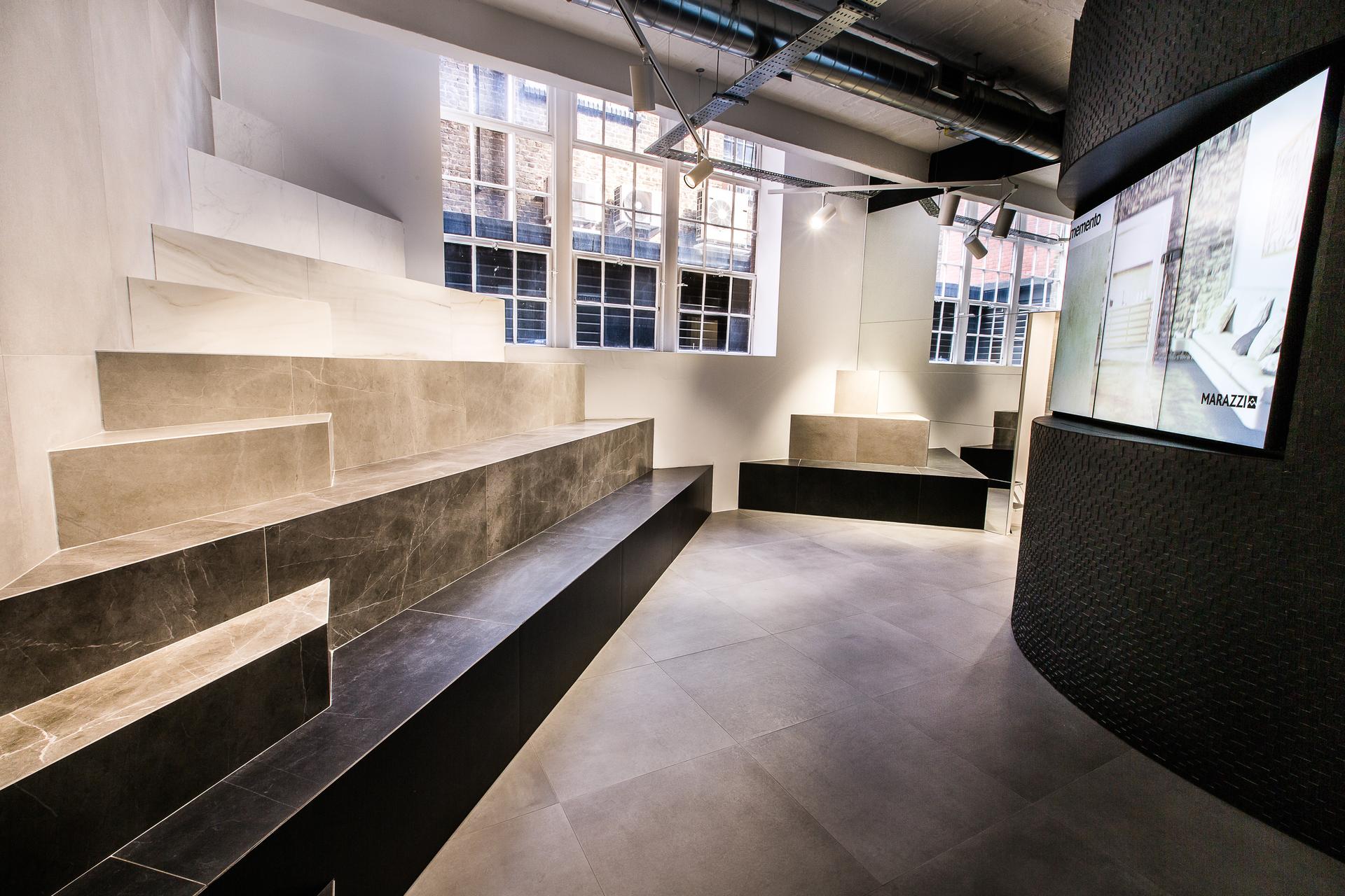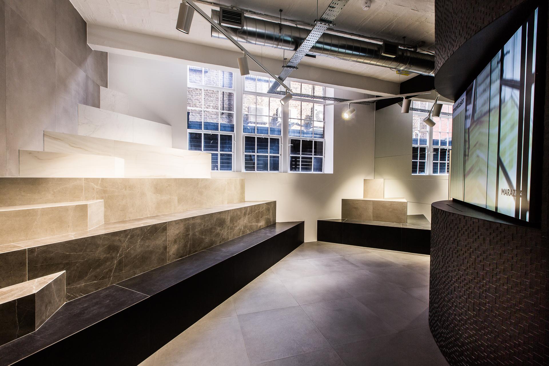 To create a unique, multi-purpose space that would also function as a networking hub for collaborations with designers, a venue for cultural events and a major materials archive. This was the concept behind the design of the Marazzi showroom in London, as envisaged by architects Lorenzo Baldini and Antonio Pisano of the Marcel Mauer firm, who imagined each of the building’s floors being used for a different purpose: the ground floor hosts activities aimed at the public, enticing people in with a real ‘wow’ factor; working areas are located on the first floor to make the most of the natural light, while the basement level has been transformed into a vault-like space.