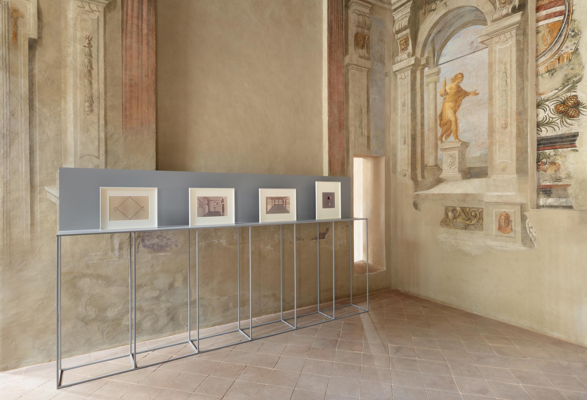 “In his works for Marazzi,” exhibition curator Ilaria Campioli explains, “Luigi Ghirri placed the ceramic material within a wider reflection on representation. The surfaces become part of the system of measuring and reducing the world into scale, which was so important for the artist in that period. The combination of the different planes and grids allowed him to further investigate and reflect on knowledge and learning, as if they were a new page on which to learn how to write and draw each time.”
