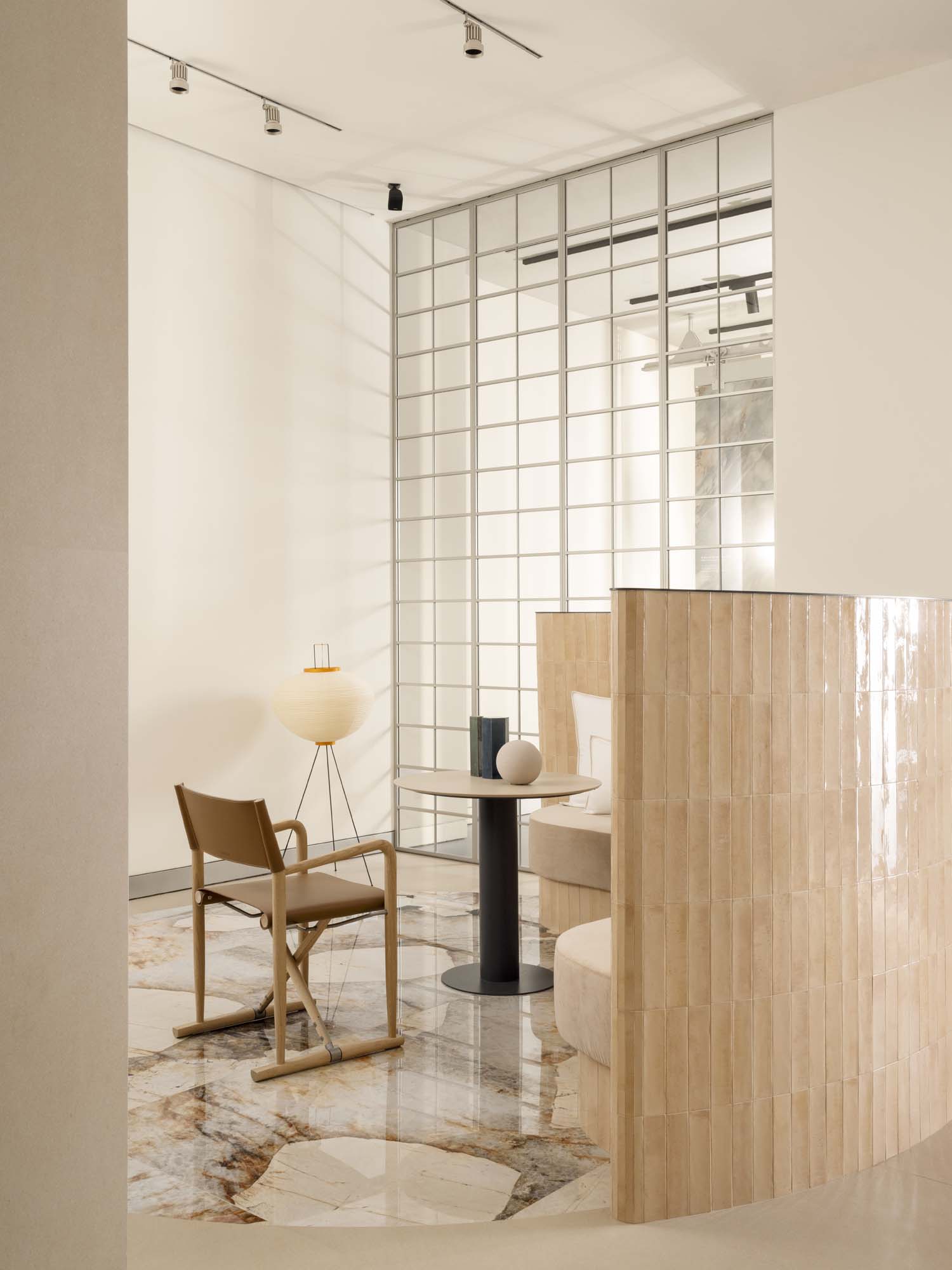 ACPV ARCHITECTS Antonio Citterio Patricia Viel worked on defining a warm and enveloping environment, where the unconventional use of porcelain stoneware transcends simple cladding to become an authentic furnishing element.