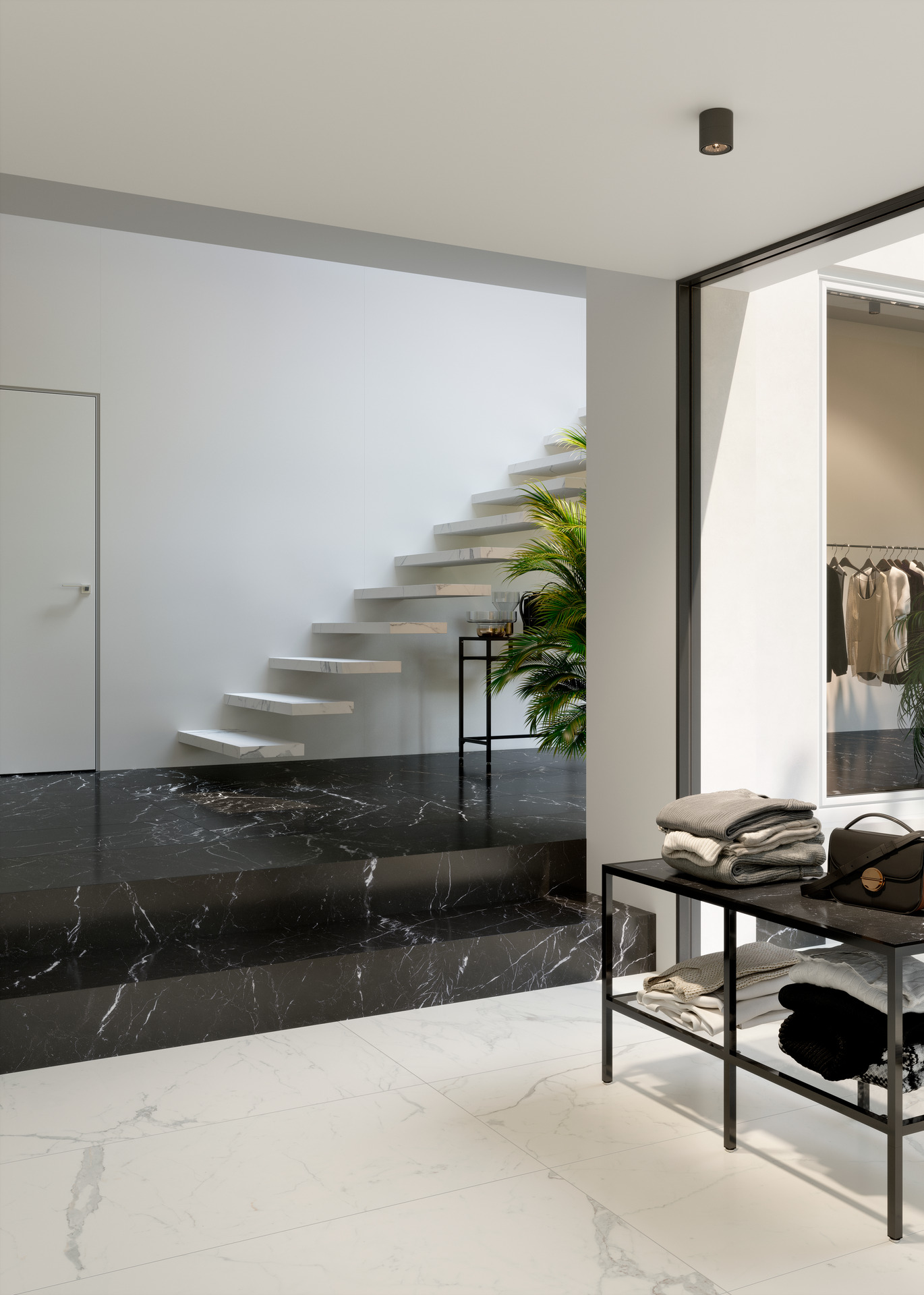 One of porcelain stoneware staircases’ most popular characteristics is their ability to transform their surroundings, enhancing every detail with a refined, versatile aesthetic.