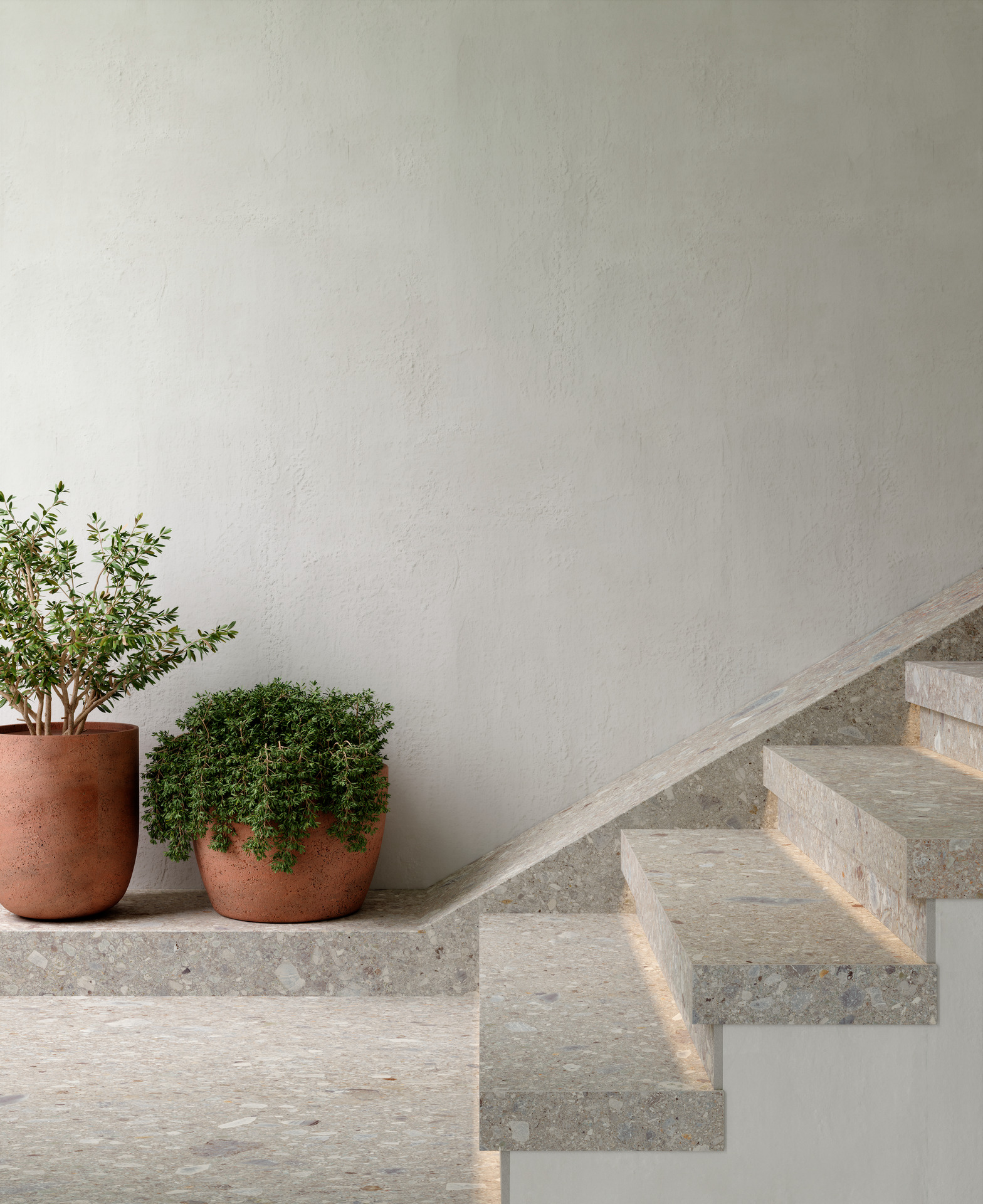 Last but not least, compared to traditional ceramic tiles, stoneware has greater mechanical and impact strength, making it ideal for use on steps and stairs, where a tough material is required. Its level of water absorption is also extremely low, a characteristic that makes porcelain stoneware step and stair tiles less liable to damage caused by damp and weather.
