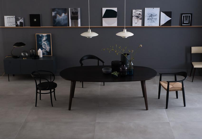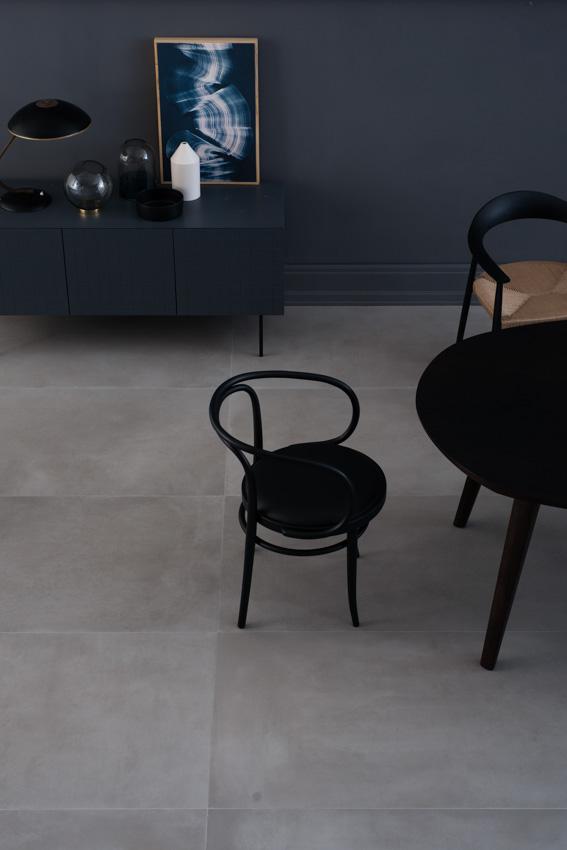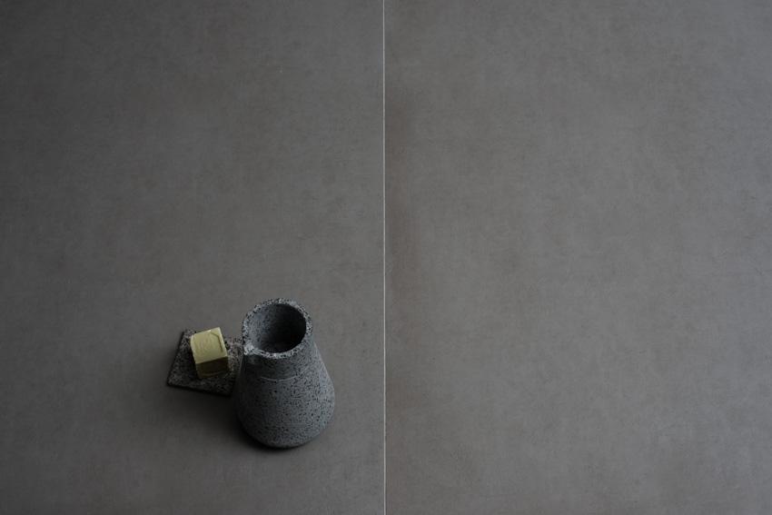 See the gallery for photographs by Andrea Ferrari, for the stylistic project by architect Stefania Vasques: here, Powder is used as a floor and wall covering, its natural refinement telling of a home where elegant grey and anthracite are the dominant colour theme and the imperfection of the material is juxtaposed with furnishings, for an ideal combination.