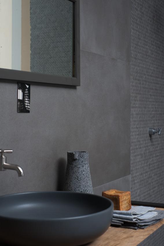 Powder, the new concrete-look stoneware by Marazzi, reinterprets the original material in a versatile collection with a contemporary feel.