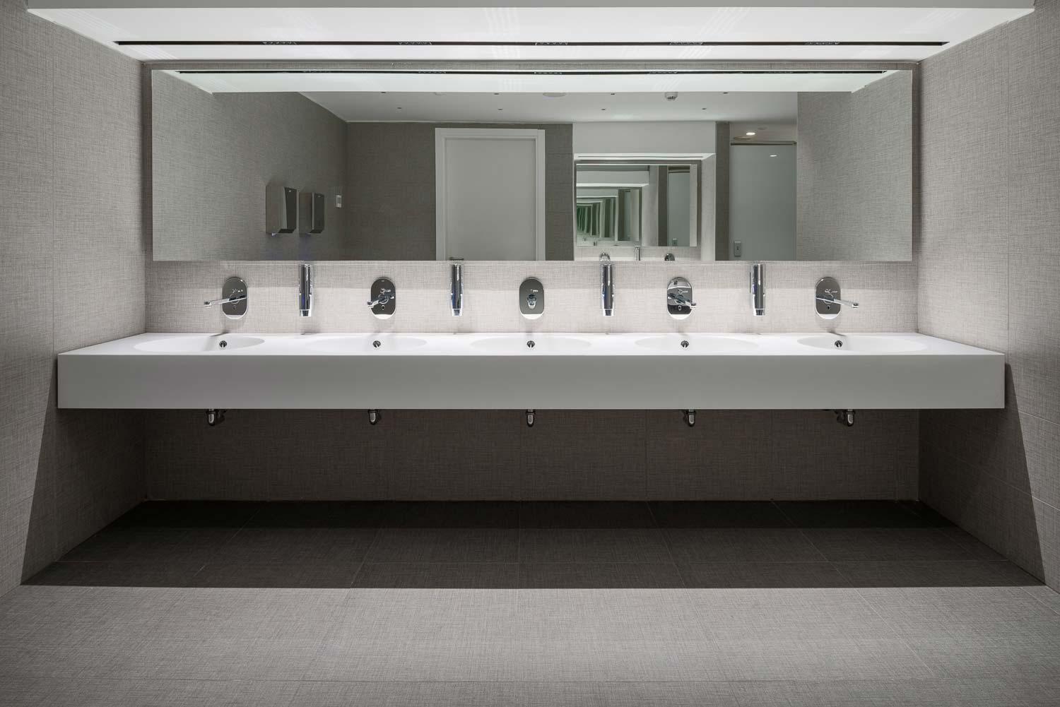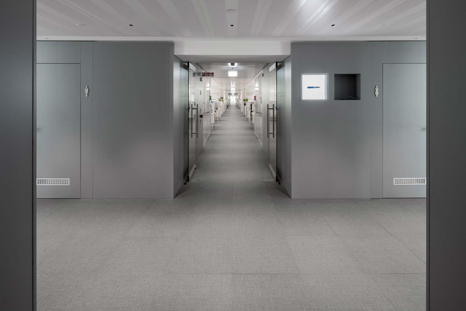 Inside the offices and the other communal areas, the anthracite grey floor in 60 x 60 size creates an effective, tasteful colour contrast with the white chosen for the various furnishings. Further balancing is provided by the grey colour of the wall tiles, this time in the 30 x 60 size.
