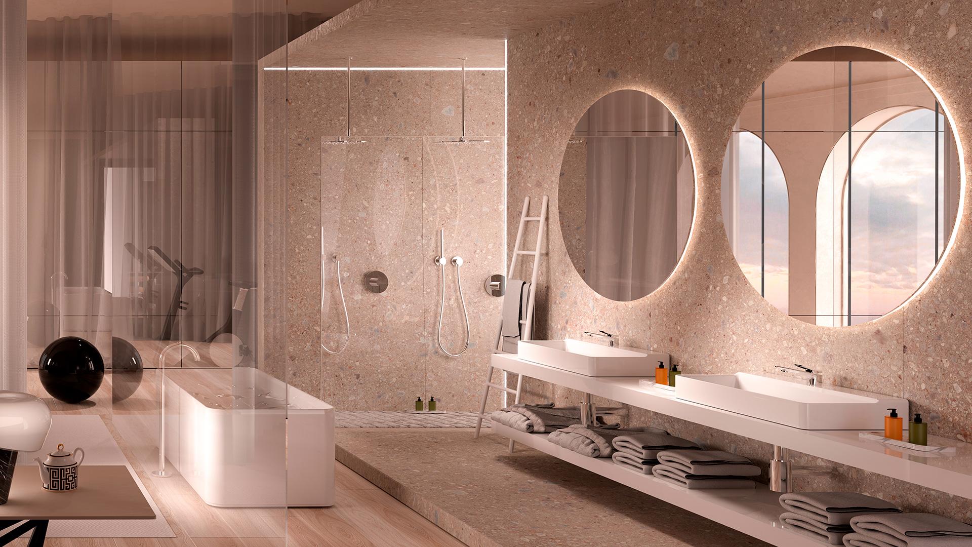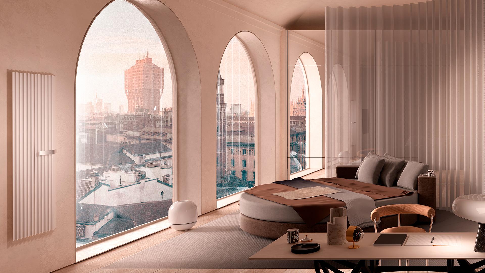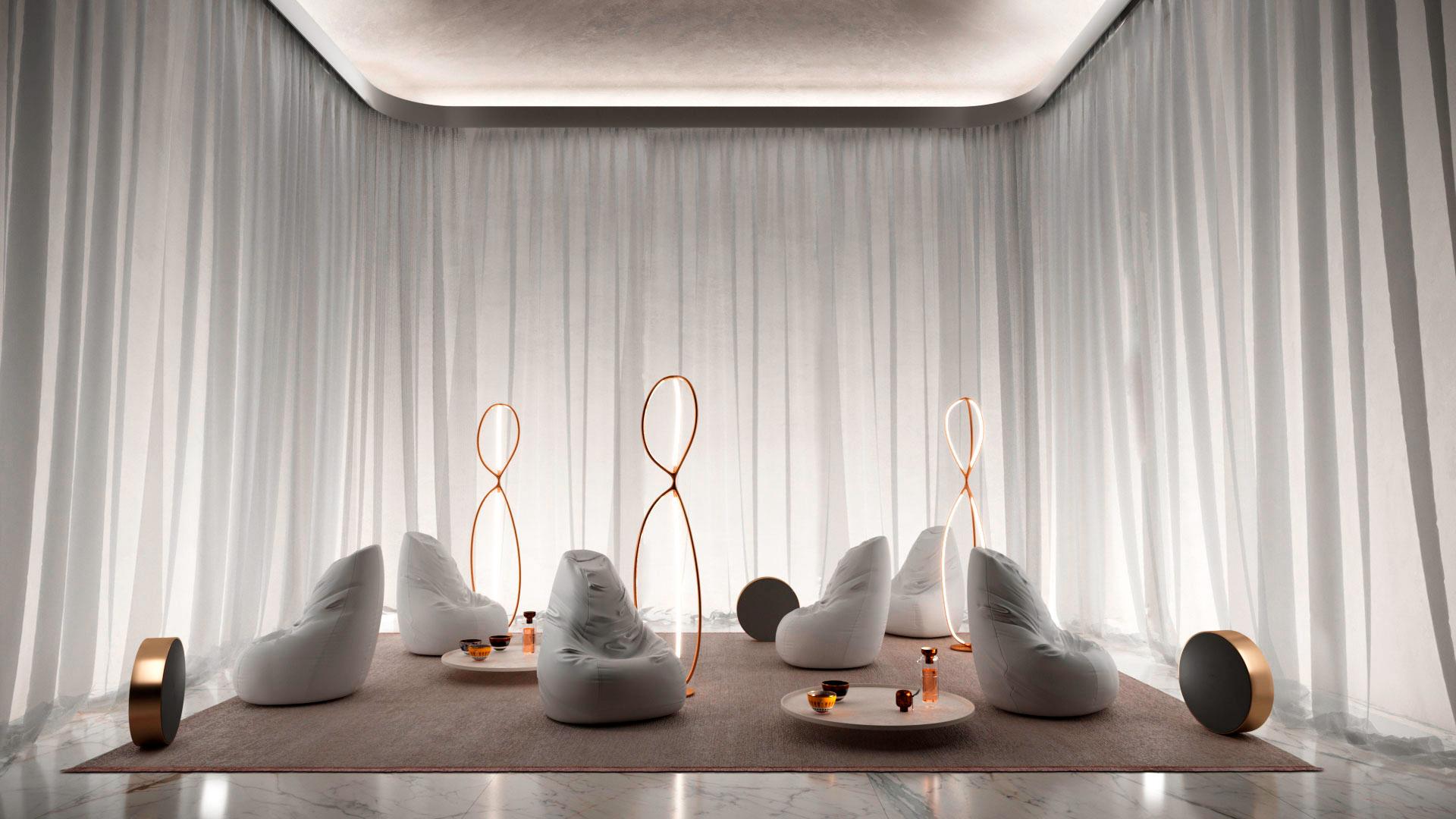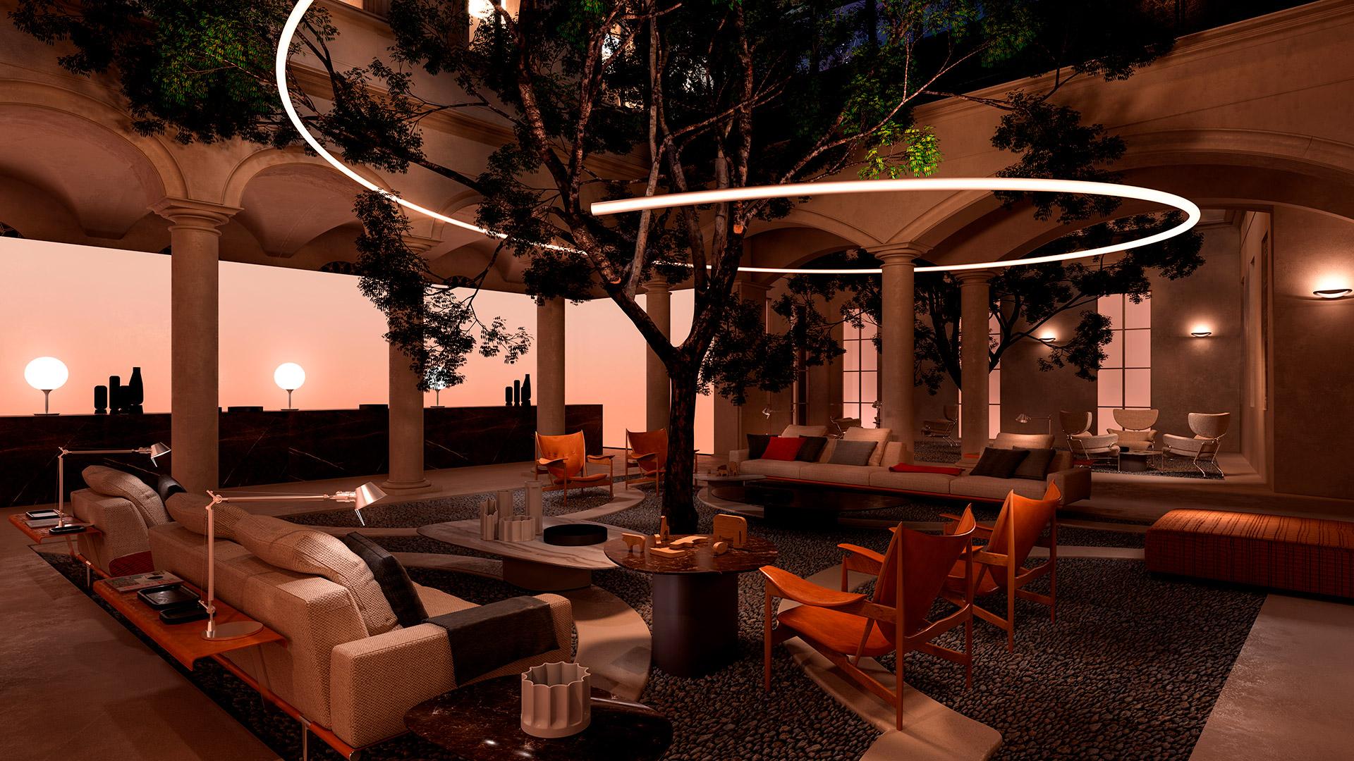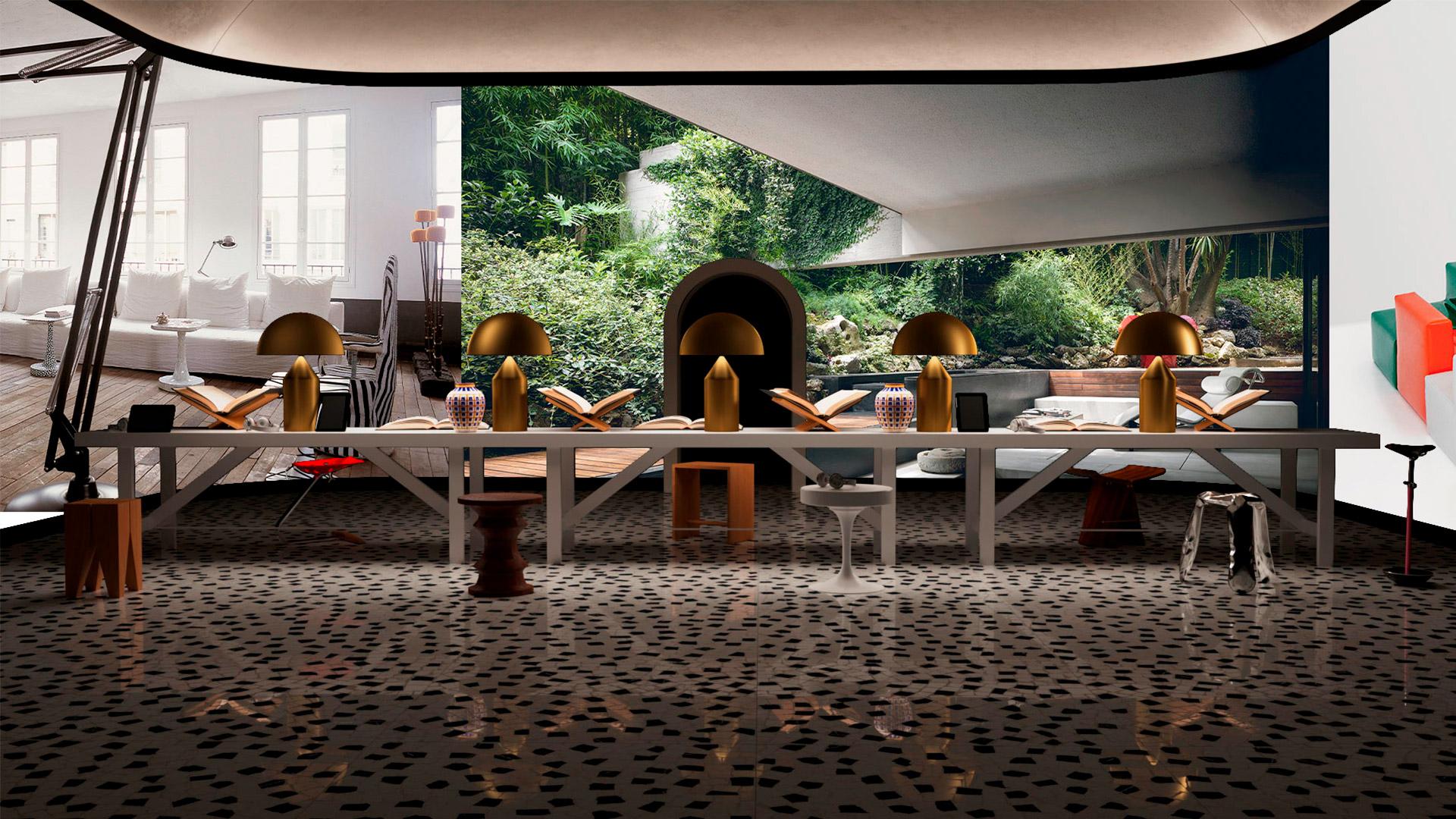 In the digital space of Palazzo Morando, Elle Decor has inaugured IperHotel, an installation by Ludovica + Roberto Palomba that redesigns locations for socialisation with the aid of a virtual storytelling that the architects themselves define as almost hyper-realistic. This augmented dimension has provided the ideal context for Marazzi products to express their genuine characteristics, in a digital space that “augments” knowledge of them and enables appreciation of their performances.