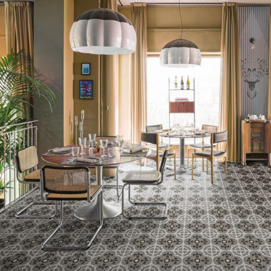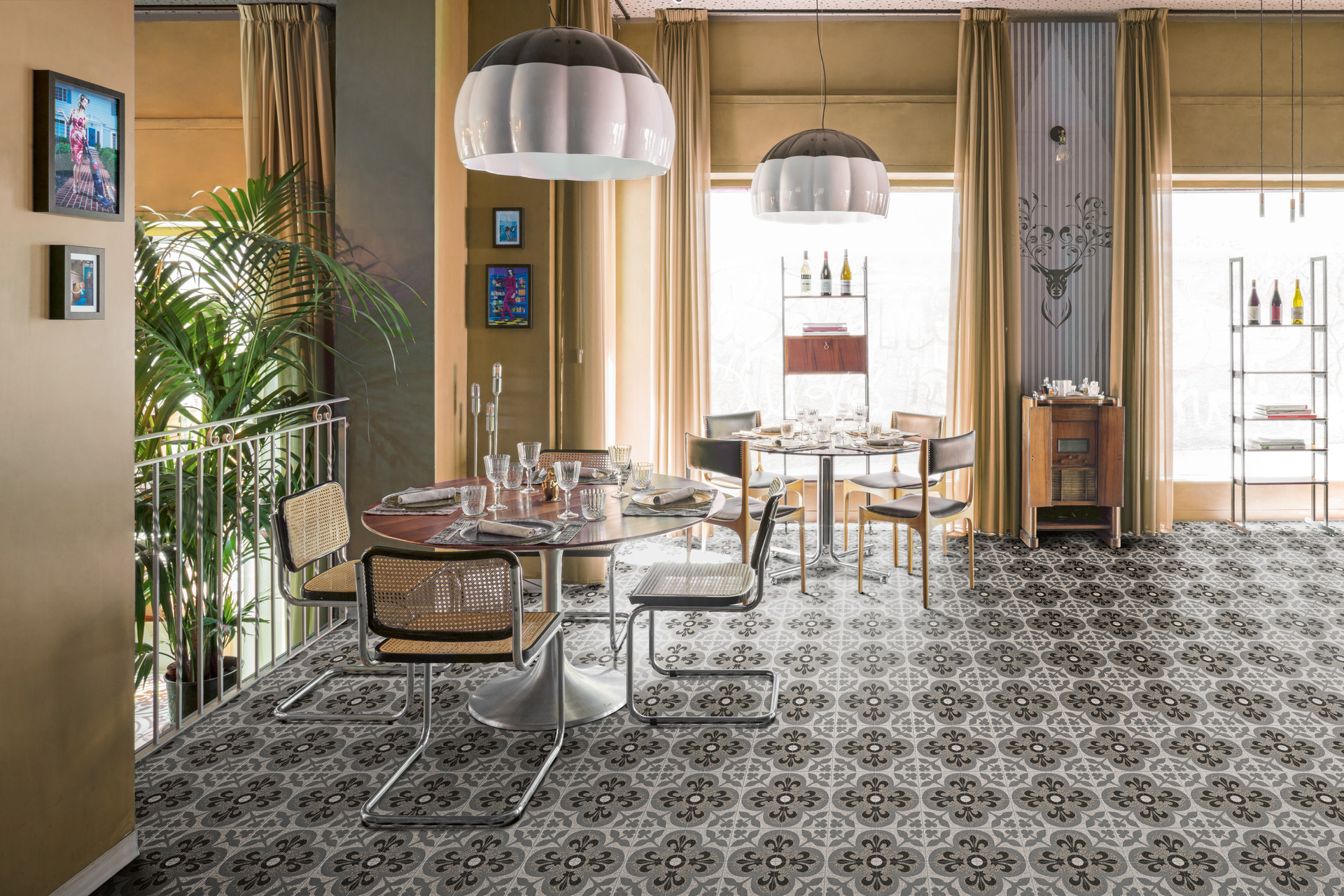 First and foremost, the choice of the pattern and colours: this effect’s typical motifs are a decorative feature in their own right, so it’s fundamental to opt for a combination that offers an attractive match with the rest of the furnishings and the other areas.