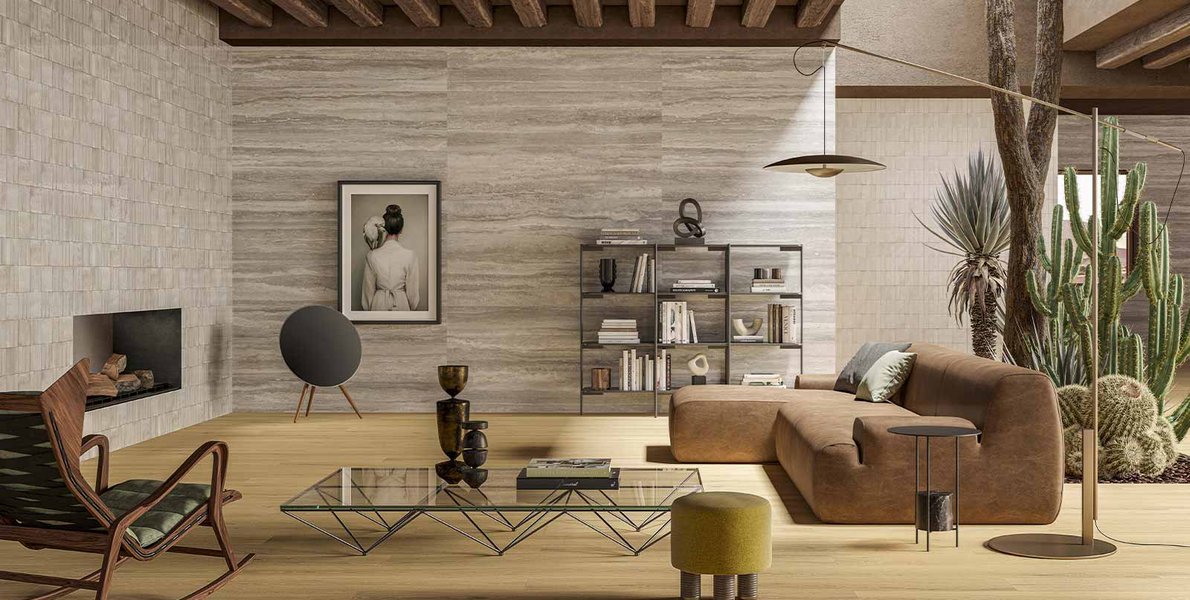 The new Marazzi Villa and Hub for 2021 appear in unusual releases by Alessandro Pasinelli Studio. Cactus, spurges and palms are the main form of vegetation in the landscape surrounding the beautiful home immersed in natural surroundings. Large windows and small slits in the walls modulate the daylight so it is refracted by the surfaces and reveal their consistency, their matt and glossy finishes, and their unusual textures. Mystone Travertino and the new Marazzi wood, marble, concrete and resin-effect collections, as well as the Crogiolo Rice and Zellige small-size tiles, provide an A-Z of materials, in which ceramic coverings are the key to satisfying new home lifestyles.