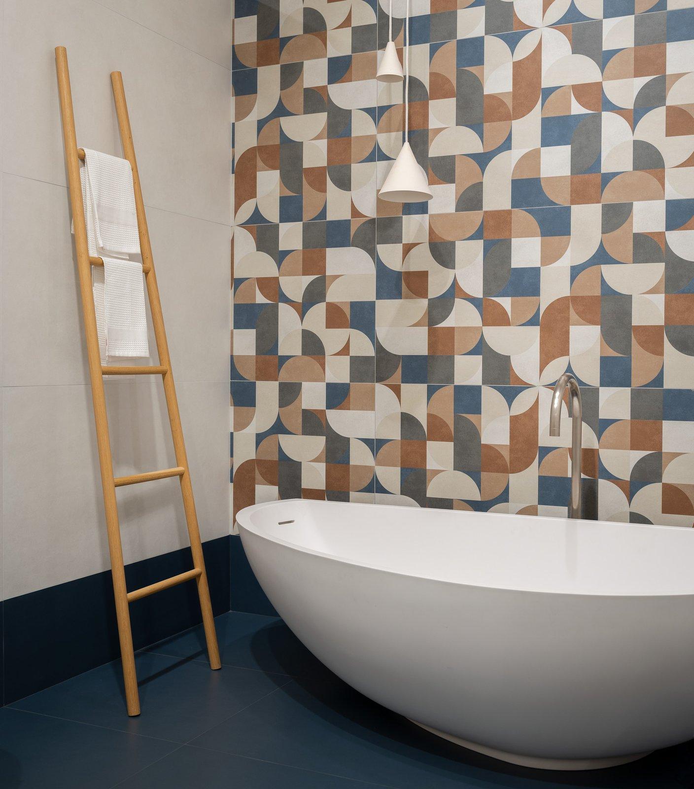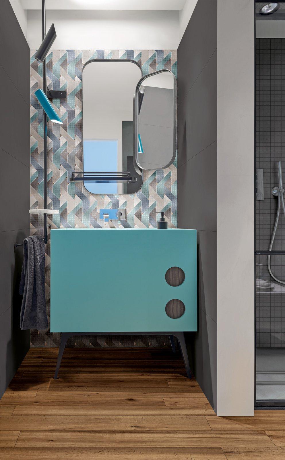 Marazzi has a wide selection of geometric decors: a creative mix ideal for designing striking backdrops, or adding variety to walls with three-dimensional effects, giving emphasis to specific areas of the project. They will make every interior unique and individual. The new Poster porcelain stoneware collection, with its Zone geometric pattern dense with colour (size 60×120 and 30×120 cm) is perfect for giving character to both residential and commercial locations, and is suitable for use on both floors and walls.