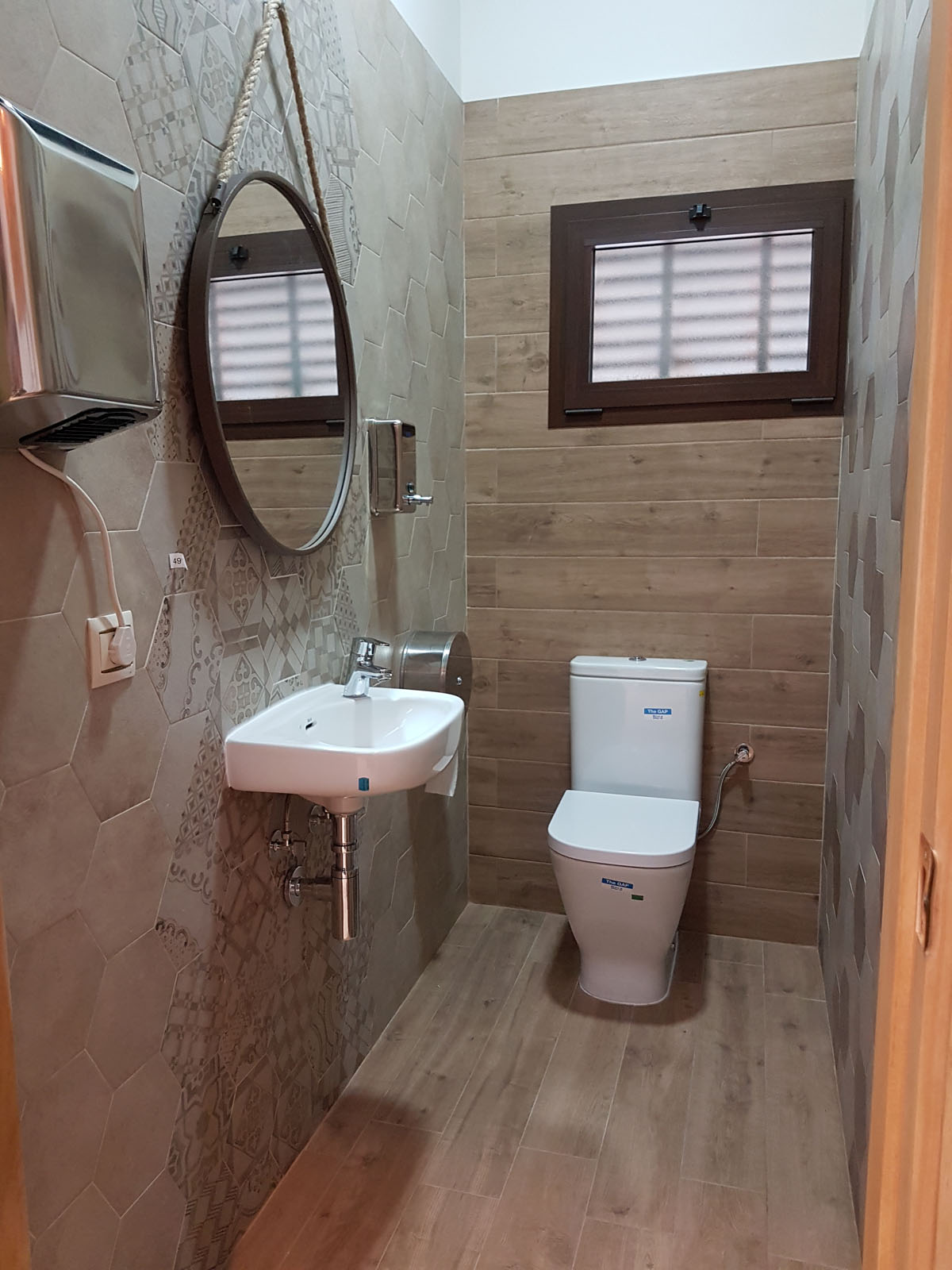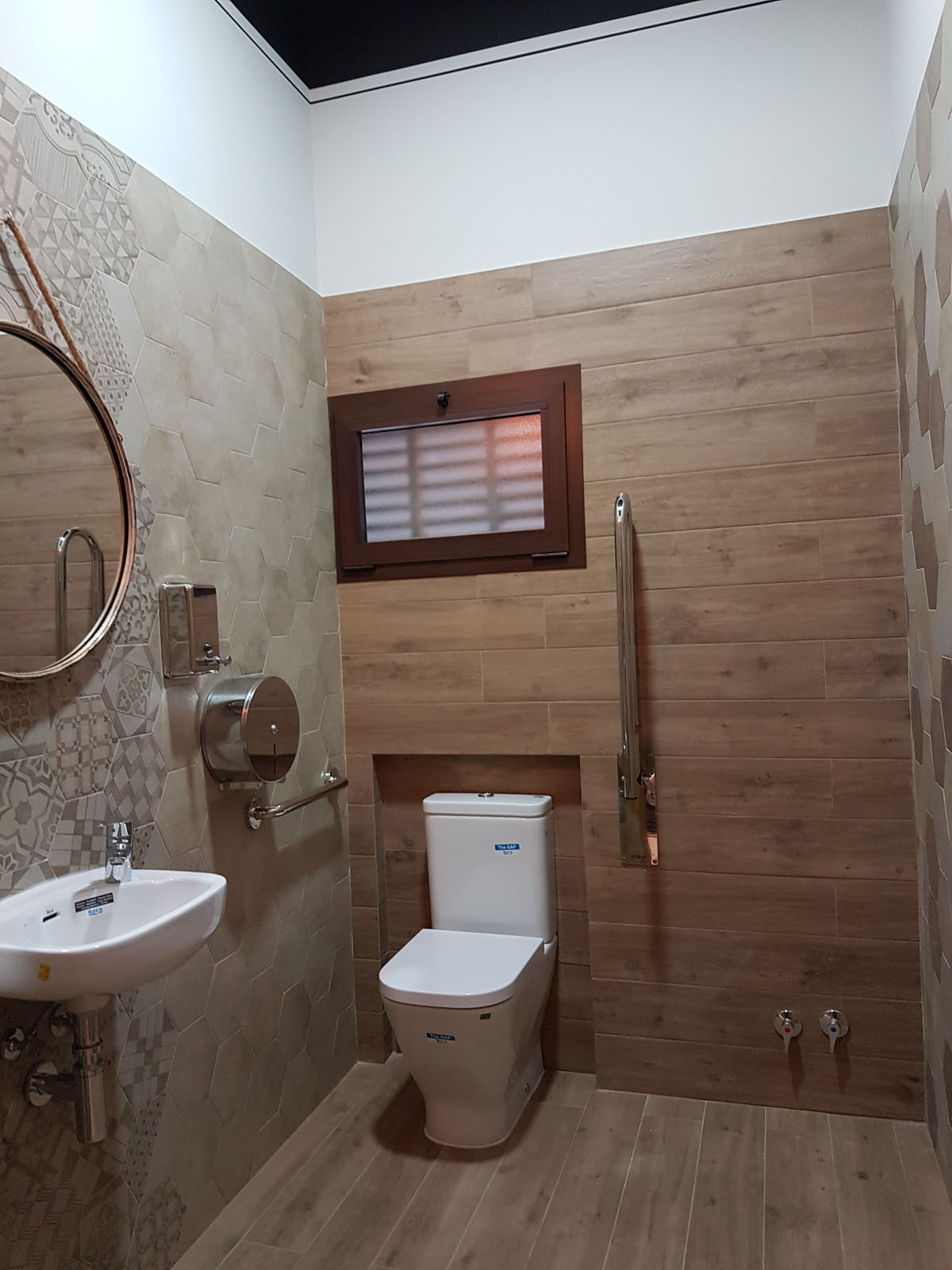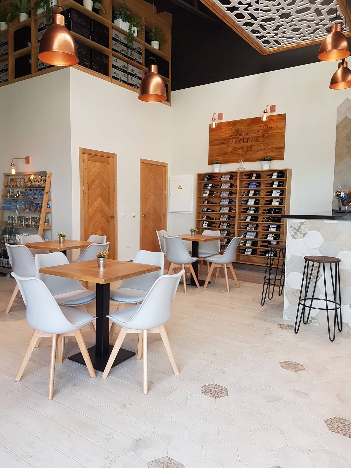 Auténtico Le Gurmé, a bakery/fast food restaurant in Utrera, Seville, was designed by the Antonio Ternero Interiorista firm with a style that offers a contemporary evocation of the Andalusian decorative tradition. The white finishes and wood and metal furnishings combine very attractively with the terracotta-concrete look stoneware of the Clays collection and Treverkway wood-effect stoneware. Clays, used in both hexagonal and brick sizes, features in the bar area (wall and counter) and the restrooms and dialogues with the Treverkway wood-effect stoneware, also installed both on the floor and on the walls. The two Treverkway wood-looks, Rovere and Acero, give the room an appealing natural warmth and create a fascinating two-tone effect.