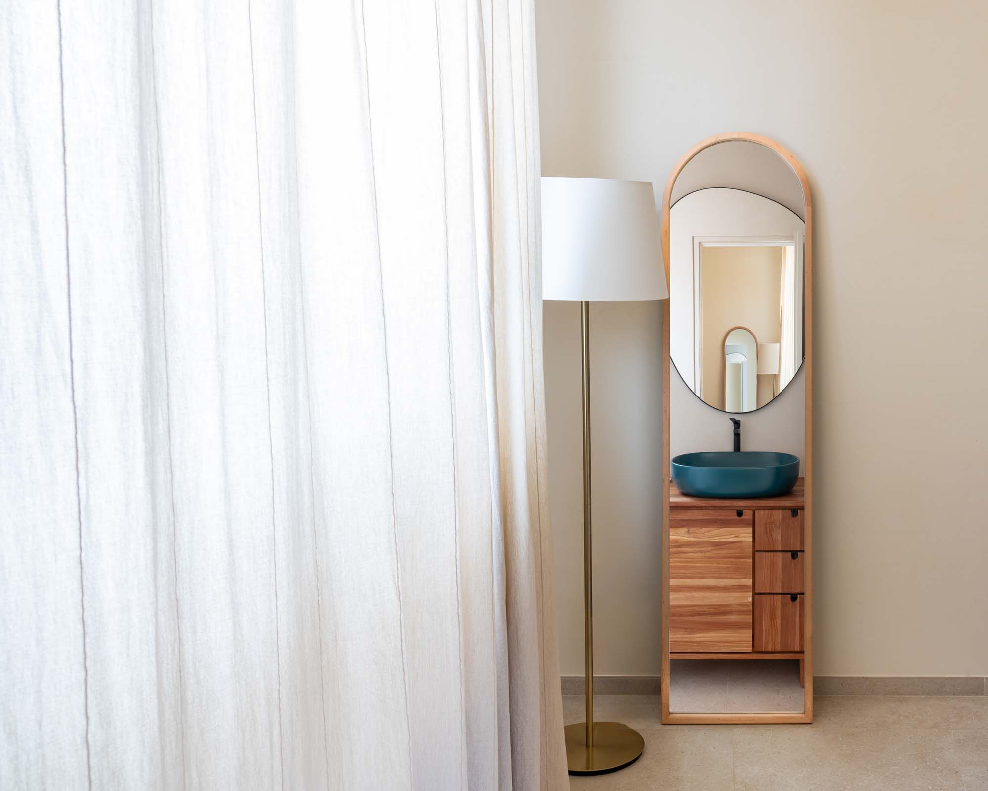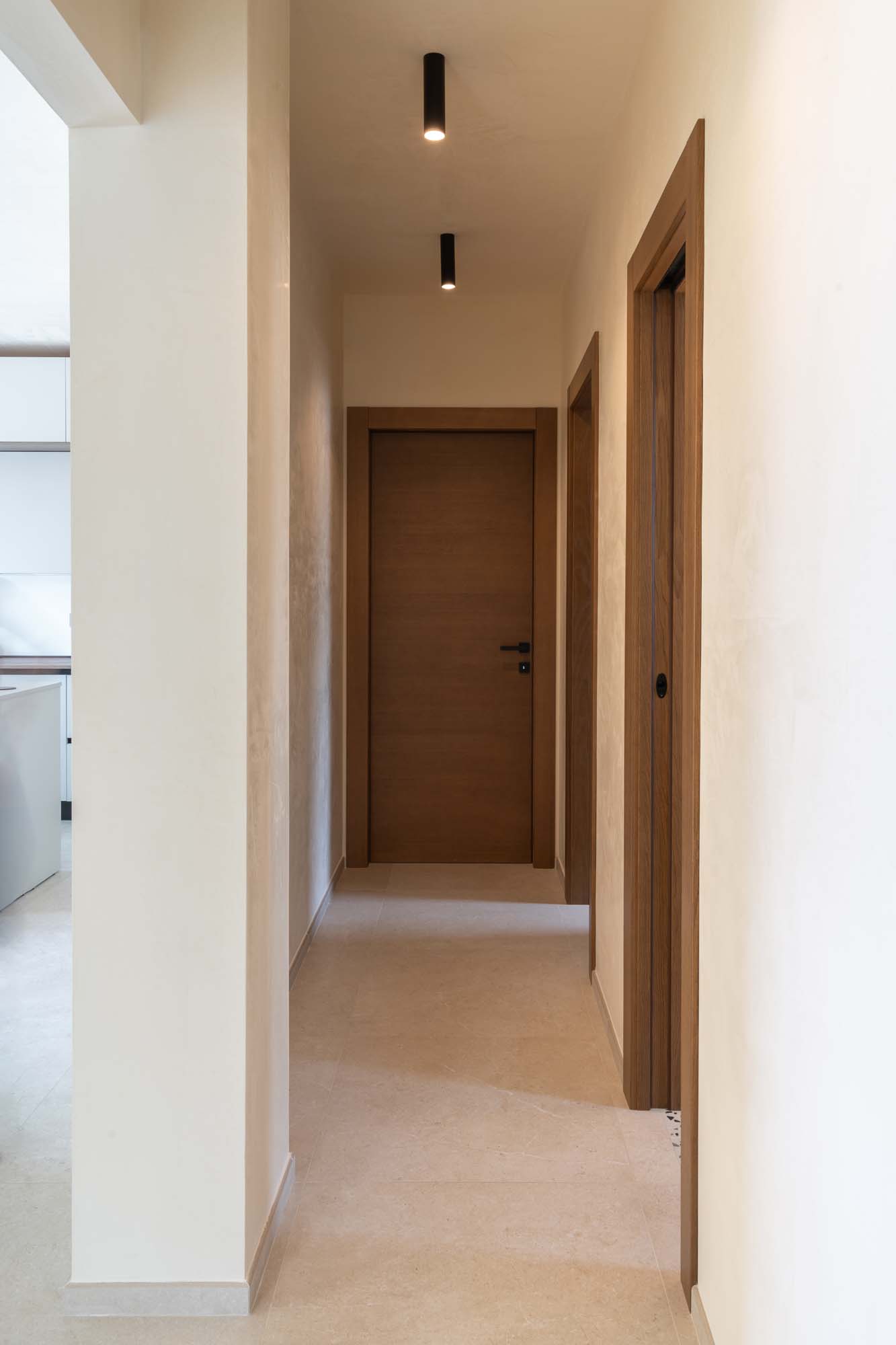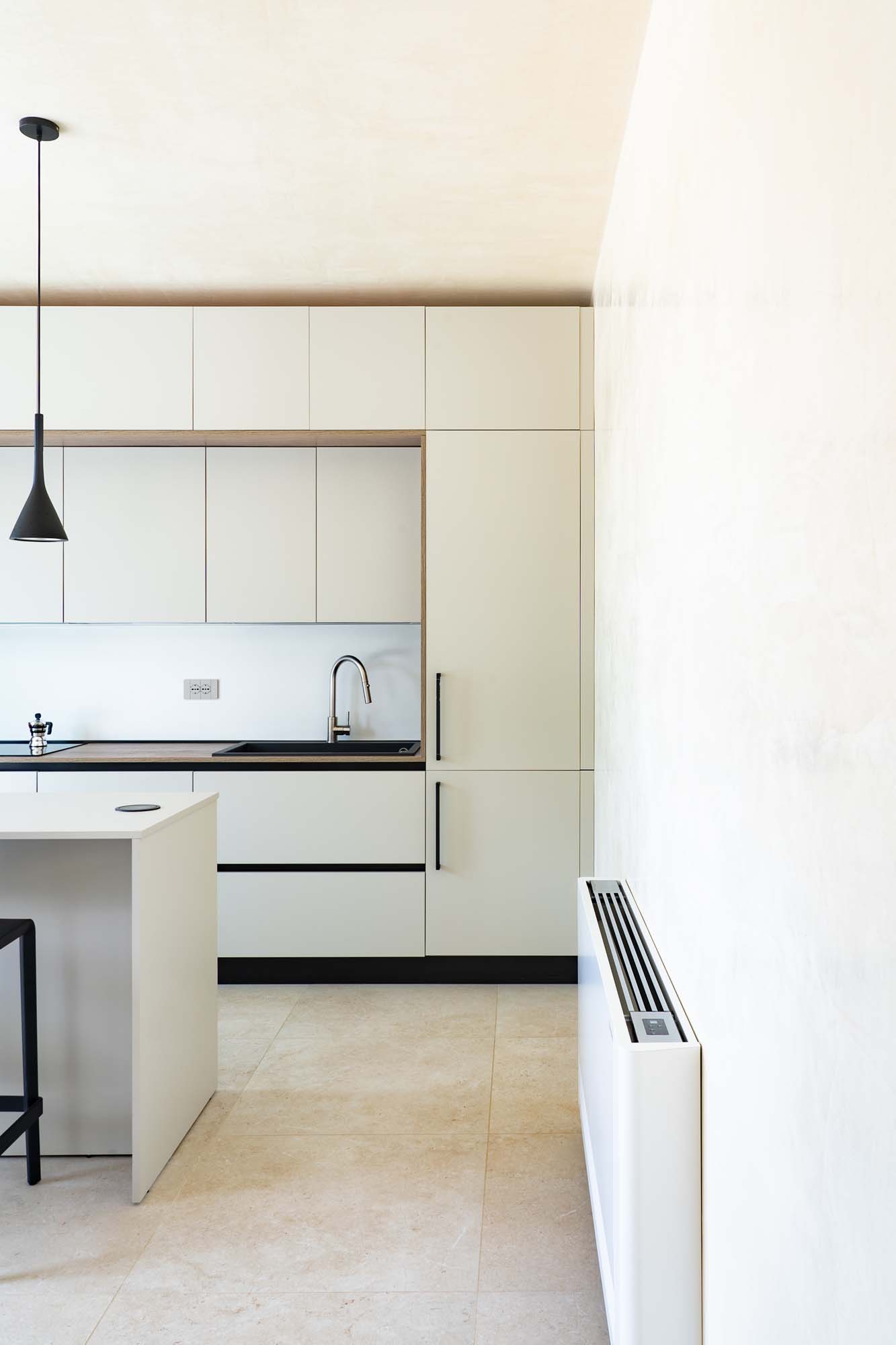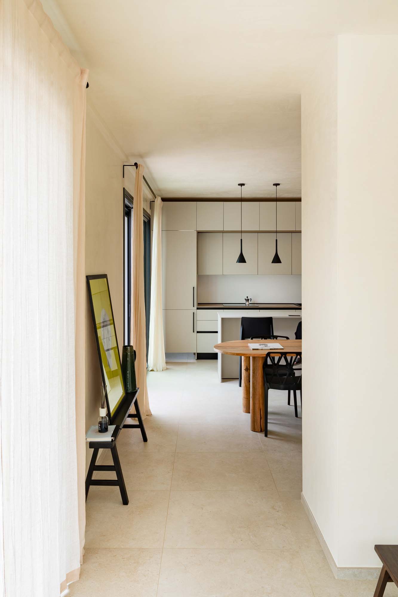The choice of materials was fundamental for the project’s success. Mara Prezioso opted for Marazzi ceramic coverings – to be specific, Mystone Limestone stone-effect porcelain stoneware in the gleaming Ivory colour – for the floors of the entire home. This product was chosen for its efficacy in emphasising the contrast between the rough-hewn stones of the “trulli” buildings and the modernity of the interiors. With its warm, natural shades, the Mystone Limestone collection combines to perfection with the stone walls and wooden features to create a comfortable, refined ambience.