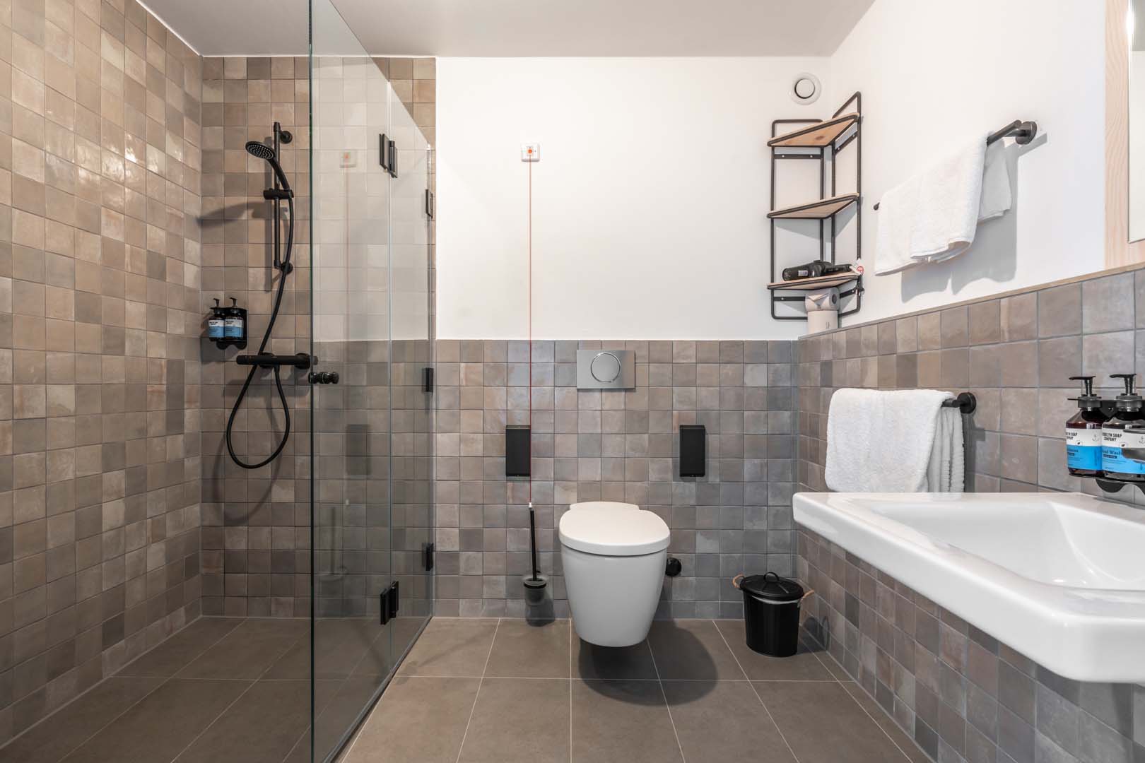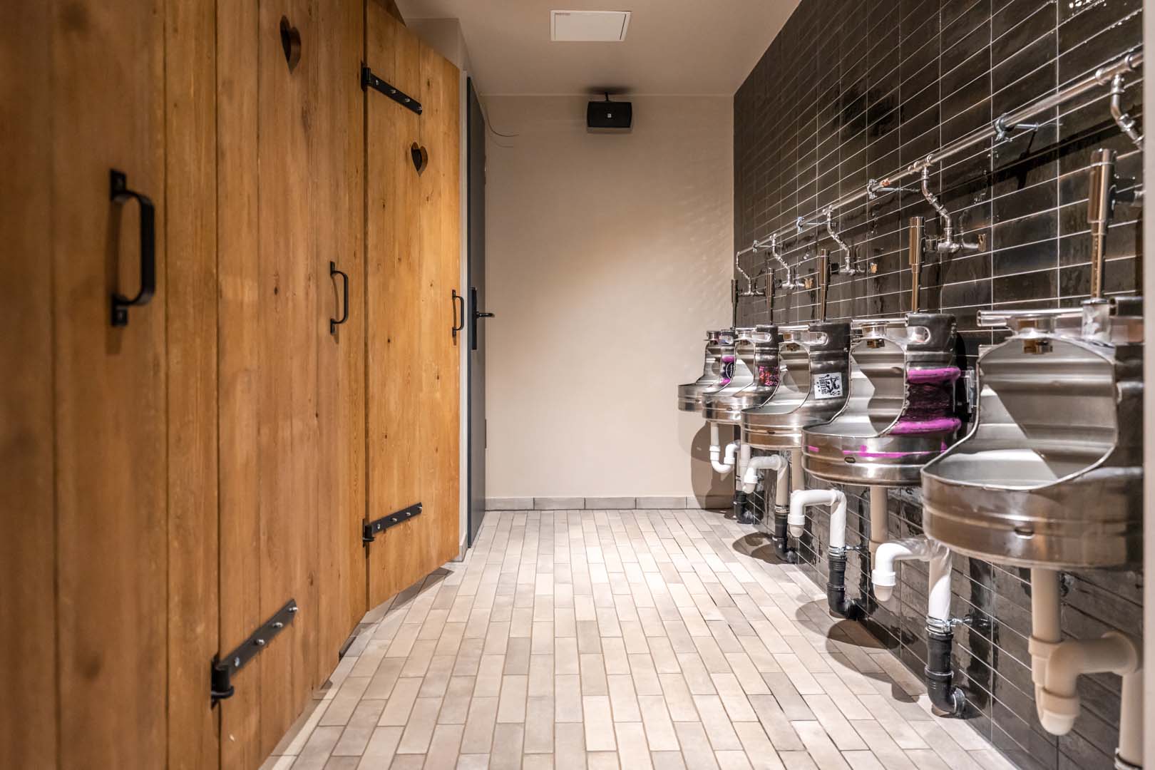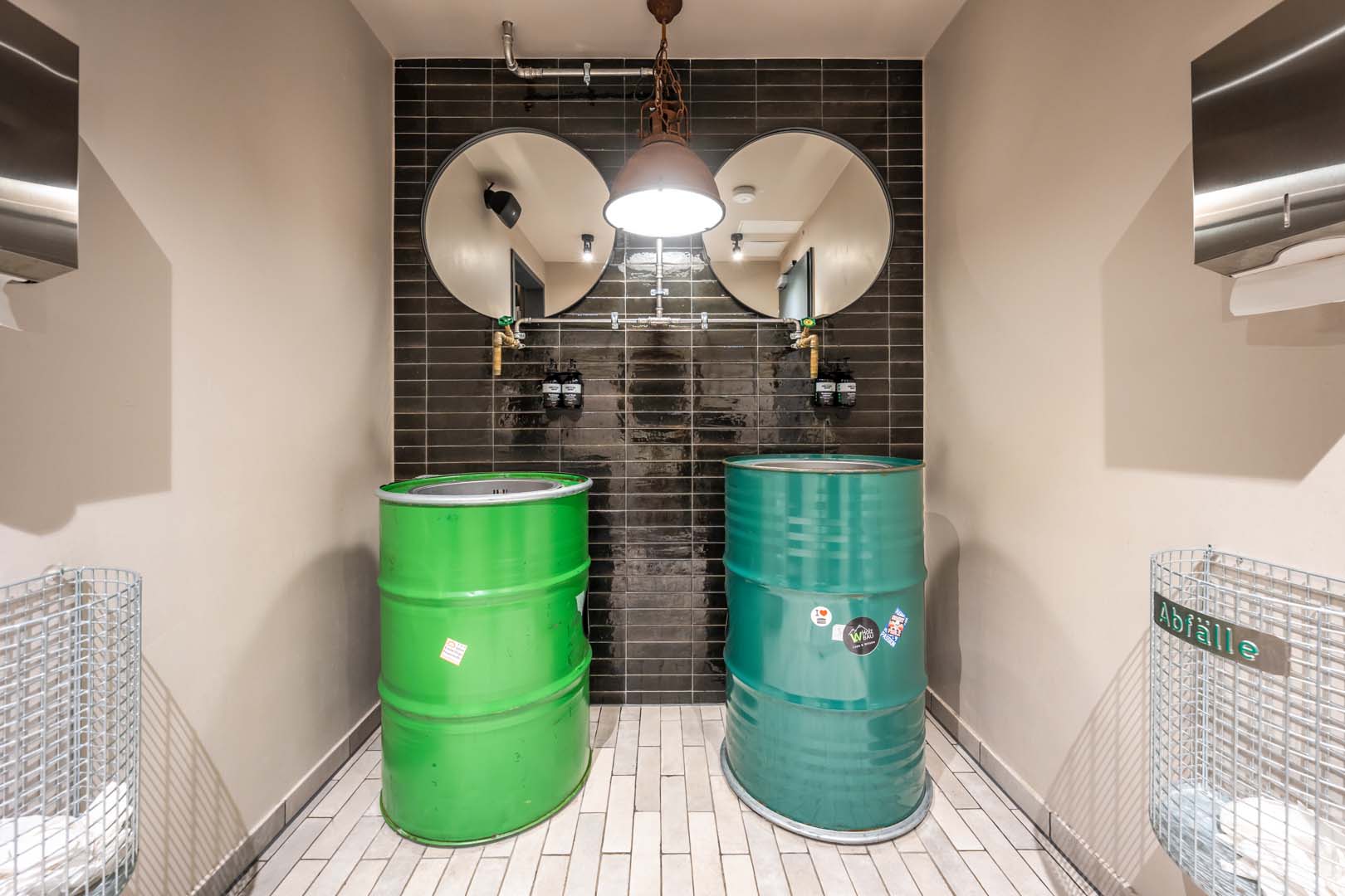 The hotel was designed by Architekturbüro Ladehoff GmbH, which made extensive use of ceramics for the bathrooms, the spa and the bar area. Small sizes with a handcrafted look from the Crogiolo Lume series in Blue and Black and Crogiolo Zellige Lana were used to cover the walls of the communal bathrooms, while for the floor two collections in concrete-look porcelain stoneware, Appeal and Terratech, were chosen for an industrial style.