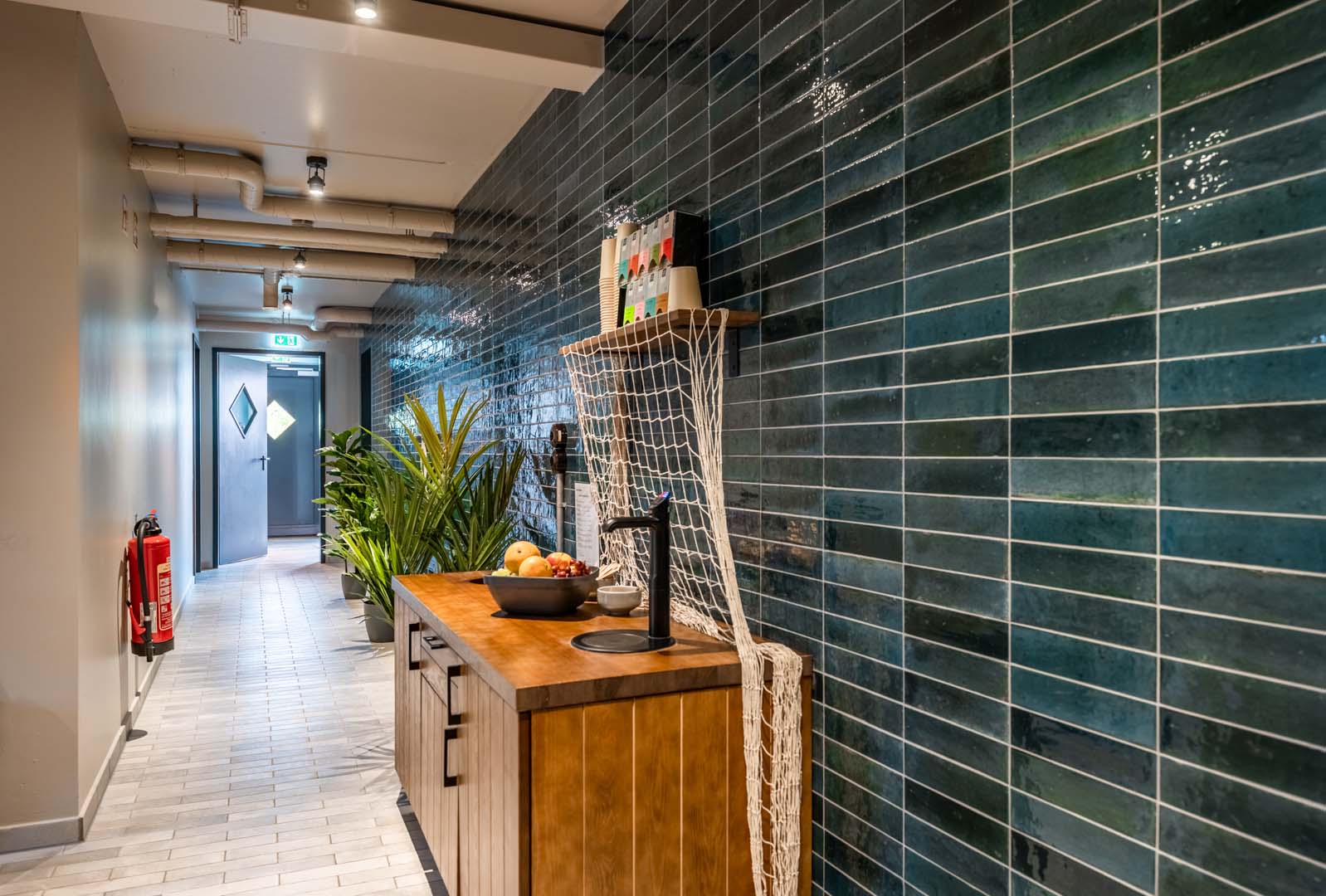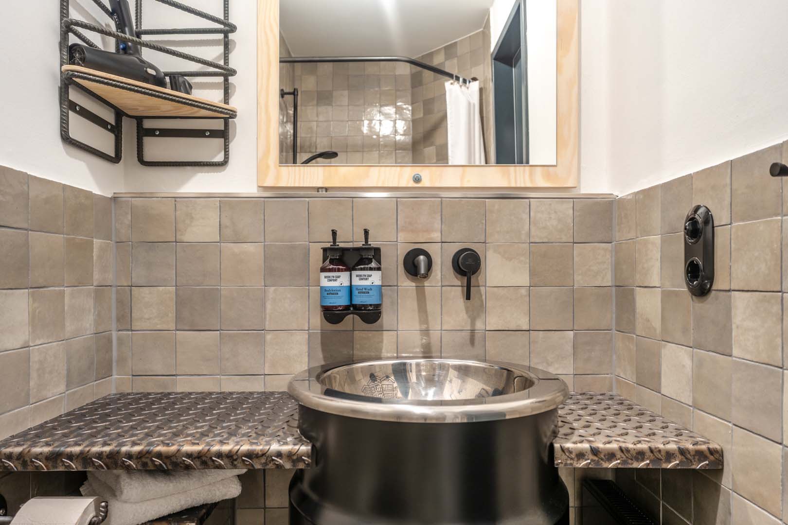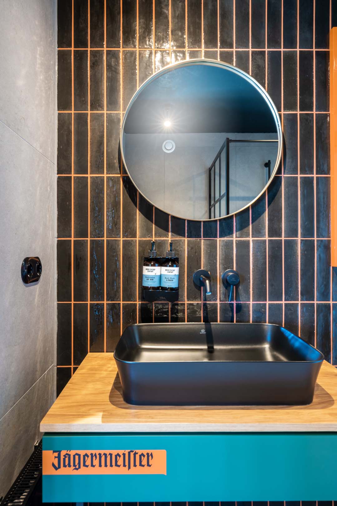The hotel was designed by Architekturbüro Ladehoff GmbH, which made extensive use of ceramics for the bathrooms, the spa and the bar area. Small sizes with a handcrafted look from the Crogiolo Lume series in Blue and Black and Crogiolo Zellige Lana were used to cover the walls of the communal bathrooms, while for the floor two collections in concrete-look porcelain stoneware, Appeal and Terratech, were chosen for an industrial style.