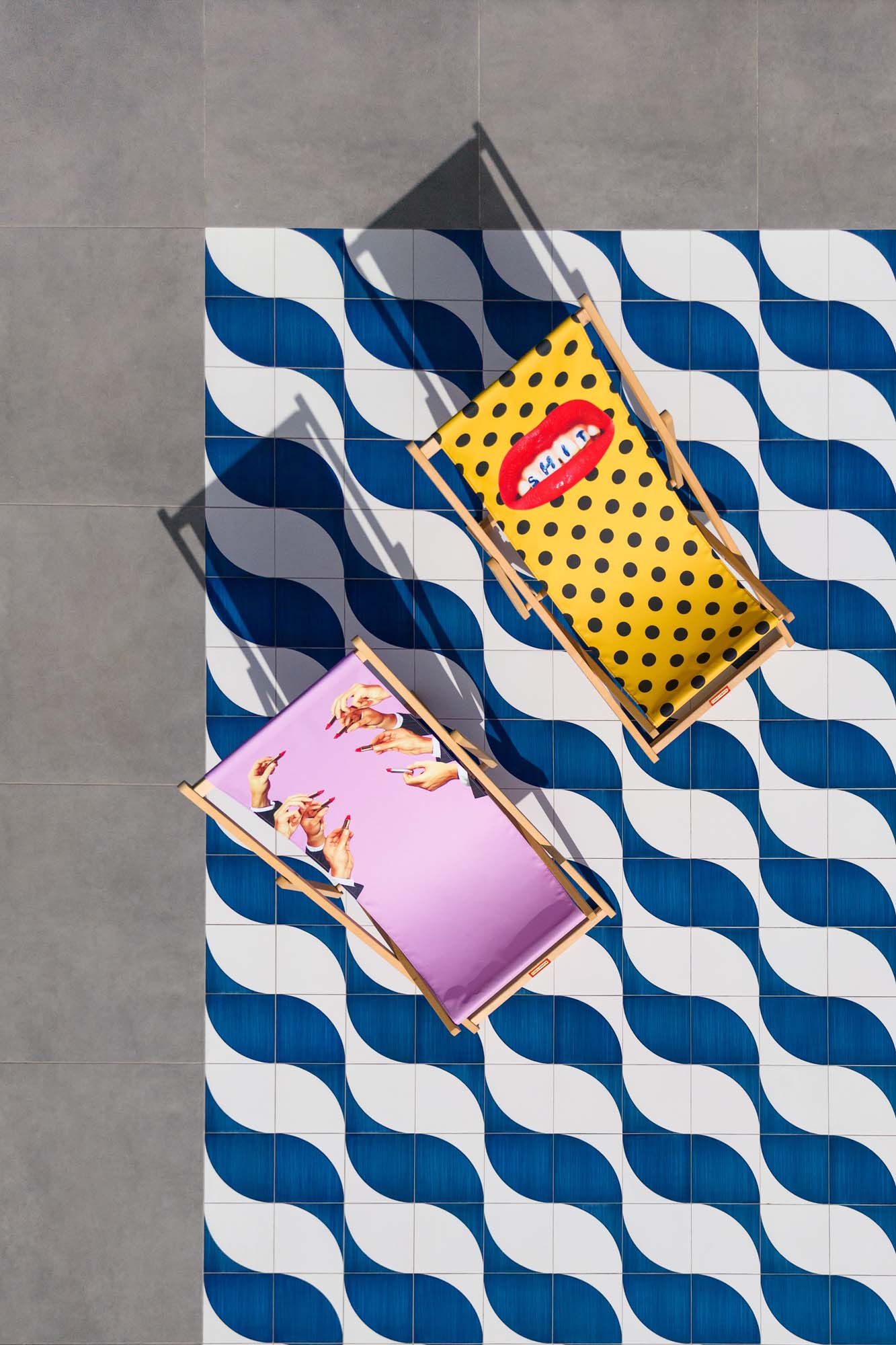 A carpet of blue waves overlooking Vesuvius: architect Carmine Abate had a true vision for the terrace of a private house in Marano di Napoli. The outdoor floor, which enjoys a breathtaking view of the Gulf of Naples and the volcano, becomes an artistic element thanks to the use of the white and blue wave decoration of the Crogiolo Scenario porcelain stoneware collection, making it an integral part of the panorama.