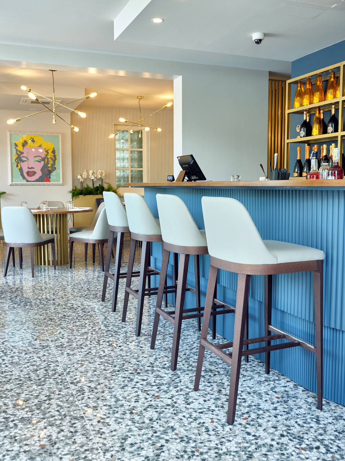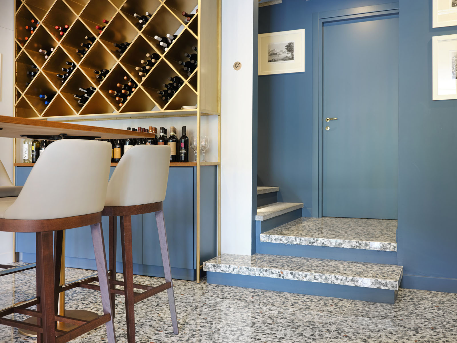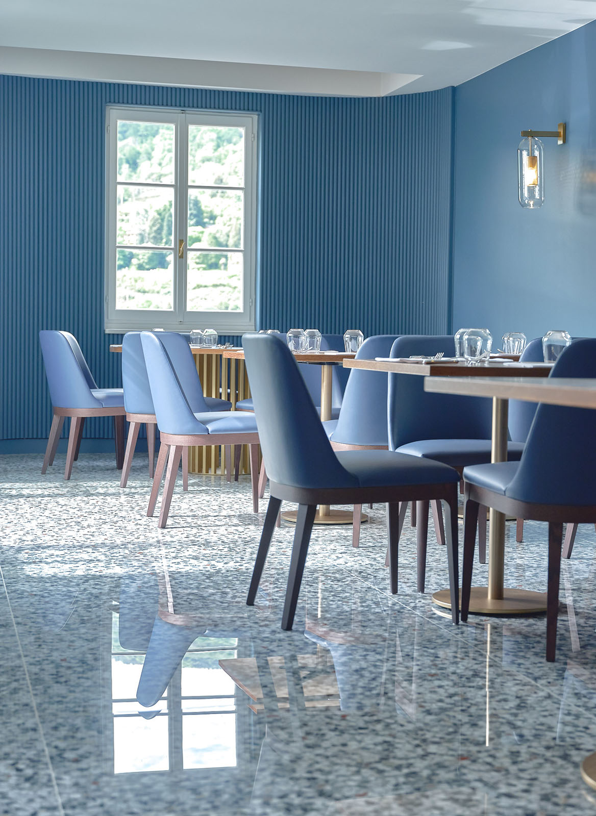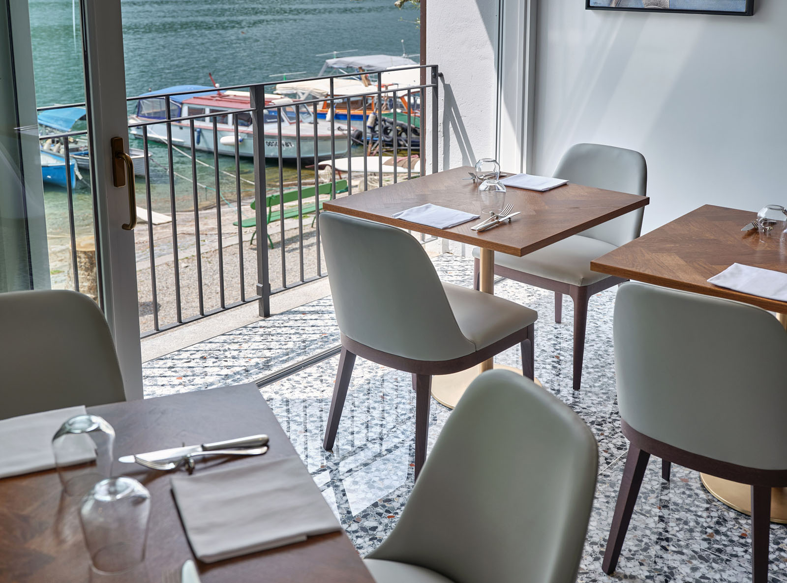 Hotel and catering, hospitality and leisureArredo Jolly’s project for the Casabella restaurant on Isola dei Pescatori, a picturesque island on Lake Maggiore, involves an elegant renovation of the interior, featuring walls, boiserie, furnishings and floors in the colours of the lake.