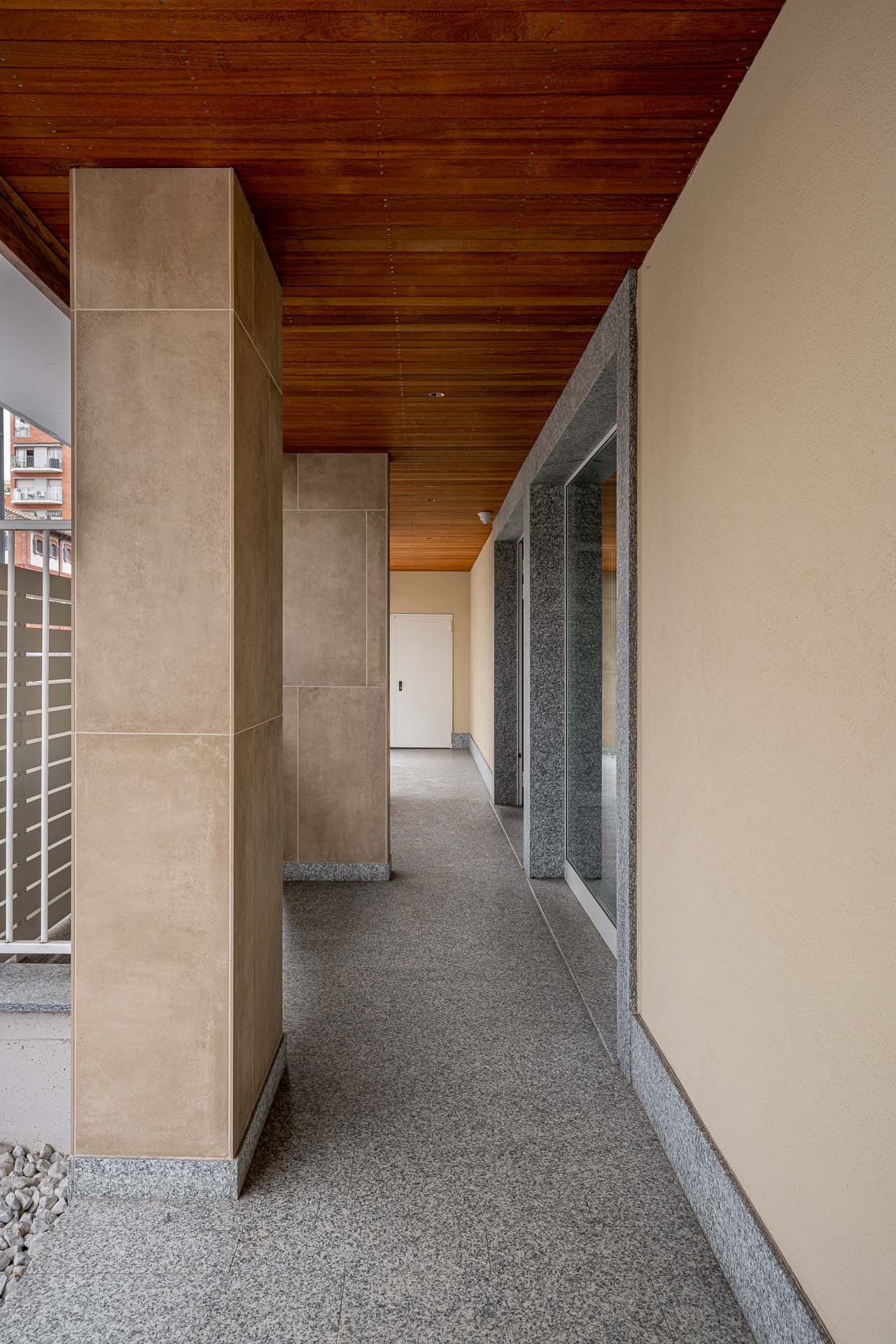 An apartment complex designed according to contemporary living requirements: large outdoor spaces that offer functional continuity with the living spaces, energy efficiency and high-quality finishes that are resistant to wear and tear, as well as weathering. Milanese engineer Simone Dominoni built a brand new 22-unit residential building at number 273 Viale Monza with two entrances: a pedestrian entrance from Viale Monza and a driveway from the Via Pelitti side street. It consists of a basement and five levels in addition to the ground floor, where ventilated walls covered with porcelain stoneware in the 60x120cm size alternate with heat-insulated ‘coat’ walls. On the ground floor, together with the main entrance hall and access to the various staircases, there is a communal gym and other functional spaces such as bicycle storage and cellars. The common areas are enhanced with a communal garden with high-quality planting.